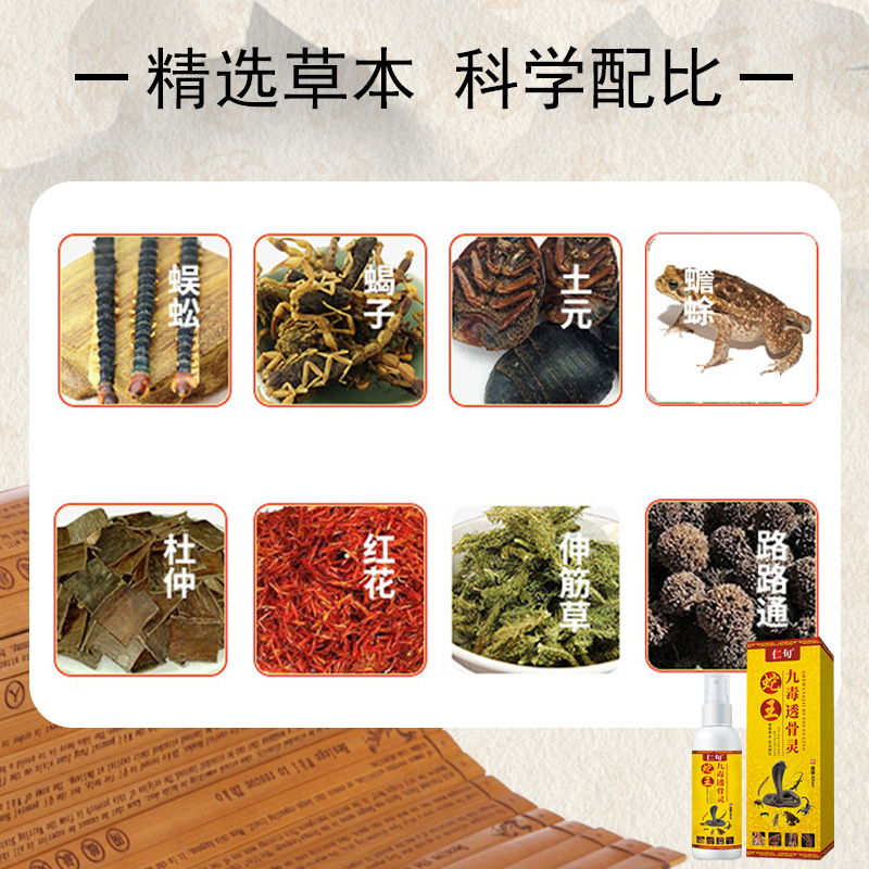 蛇王九毒护颈透骨灵喷剂腰椎颈椎肩周关节疼痛按摩酒批发自发热