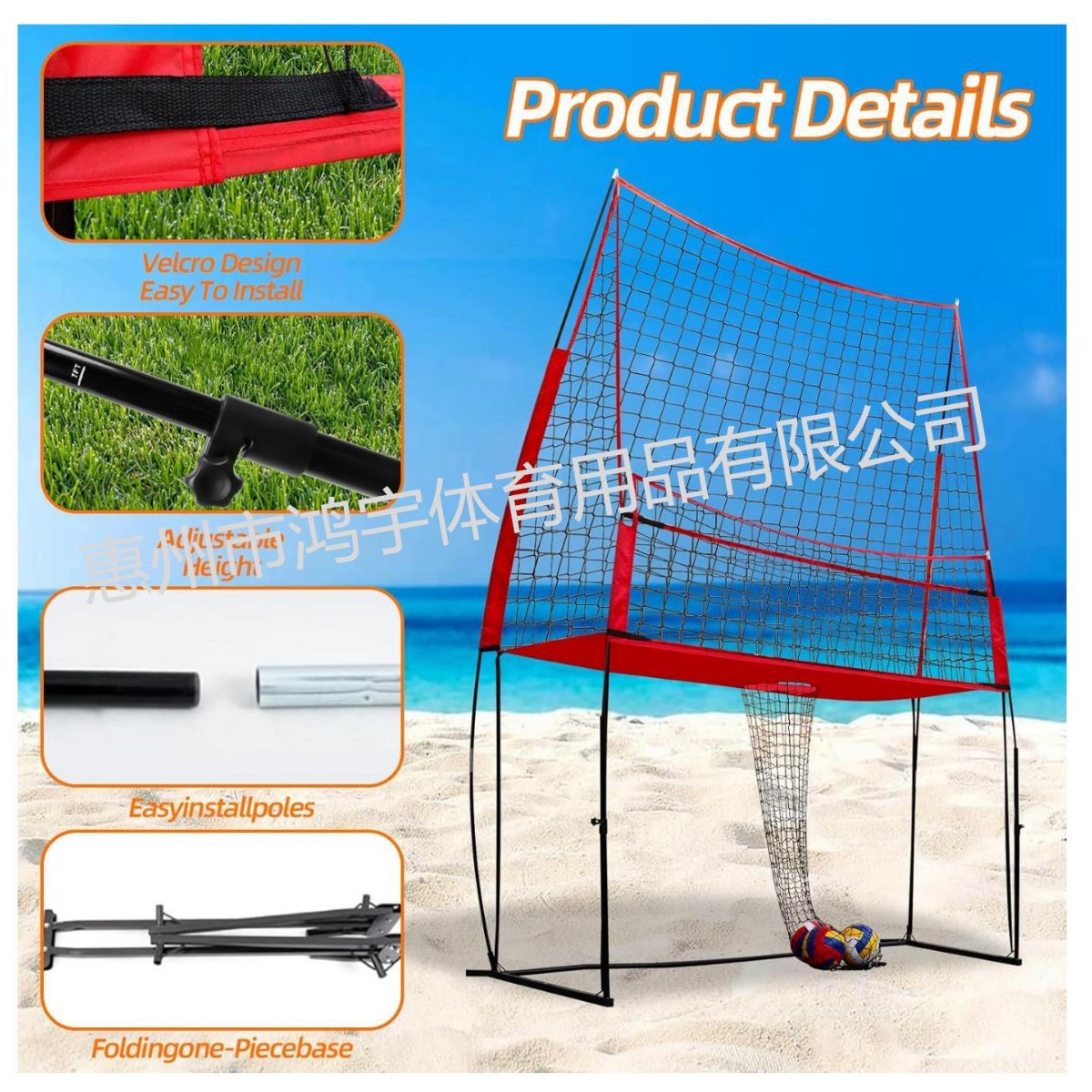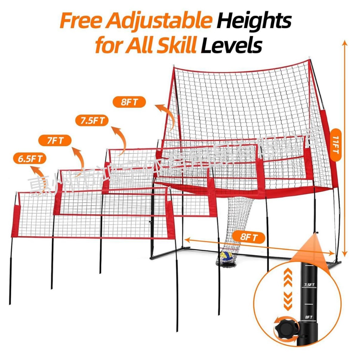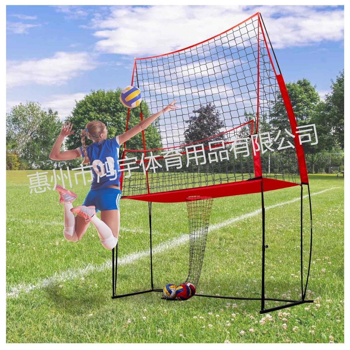 厂家直销便携式排球单人训练网11*8FT可调节高度多功能排球练习网