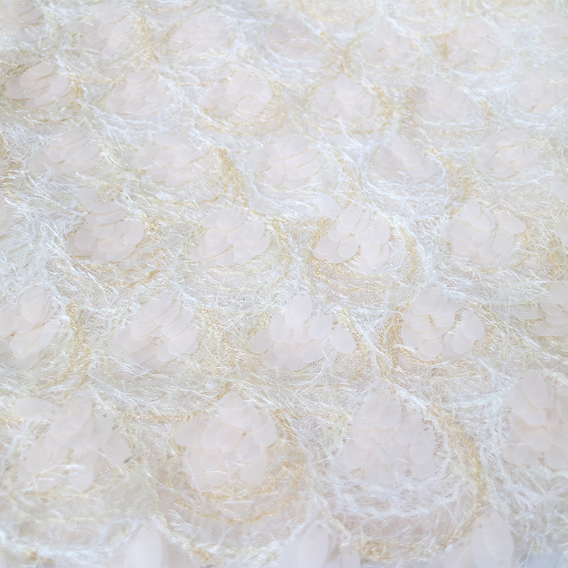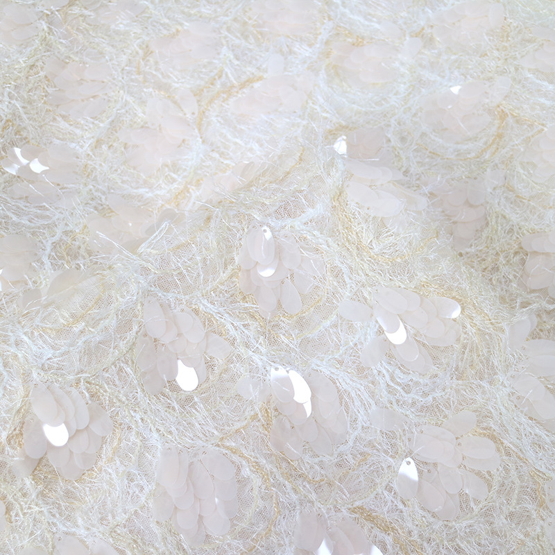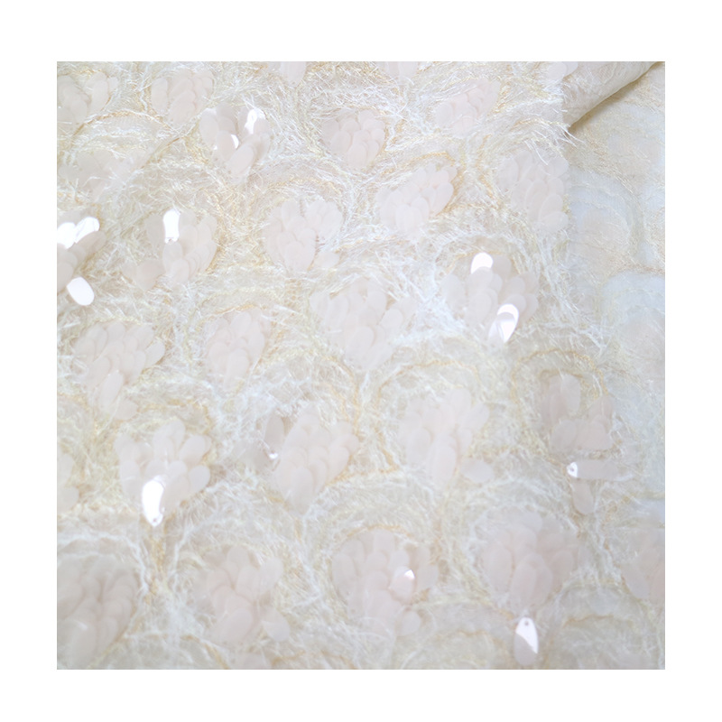 现货批发水滴鱼鳞纹毛毛布底珠片绣布 各种婚礼礼服绣花珠片面料