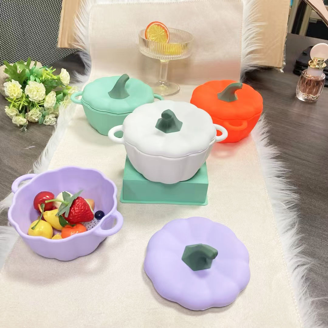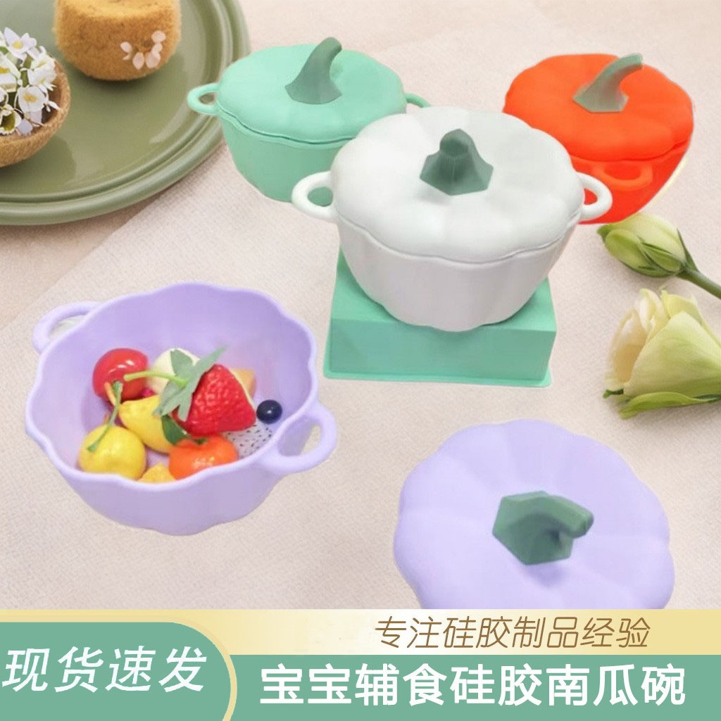 新款宝宝辅食碗婴儿防摔硅胶吸盘碗训练碗勺套装硅胶碗南瓜碗批发