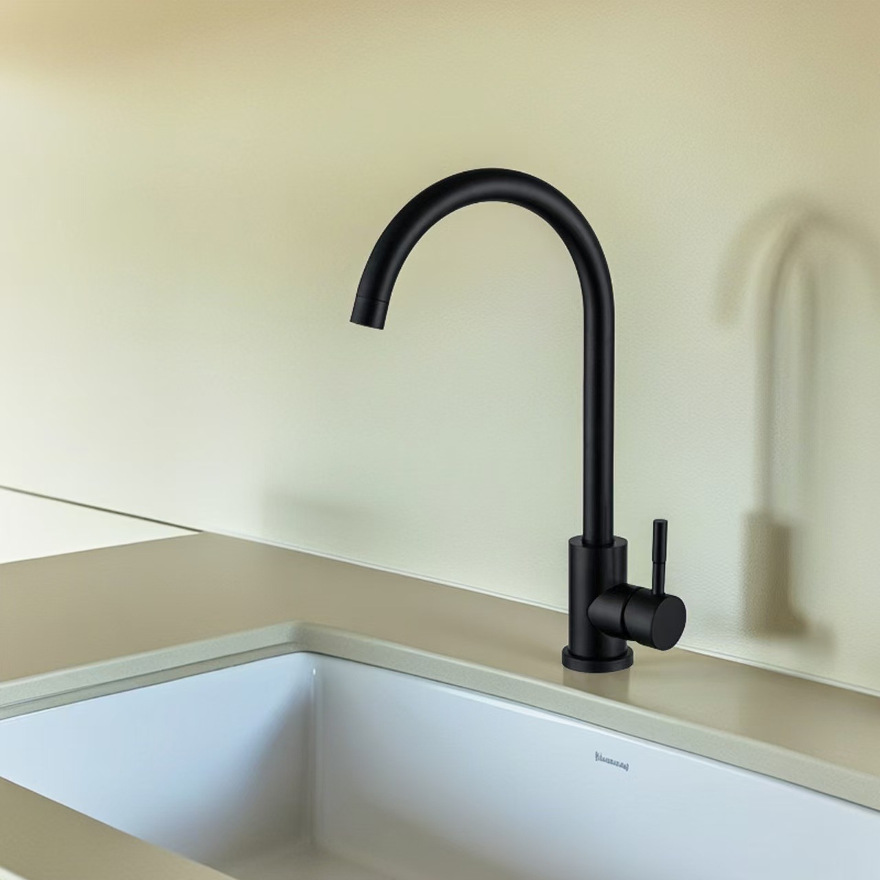 不锈钢厨房冷热水龙头家用菜盆洗碗池水槽可旋转圆三通大弯水龙头