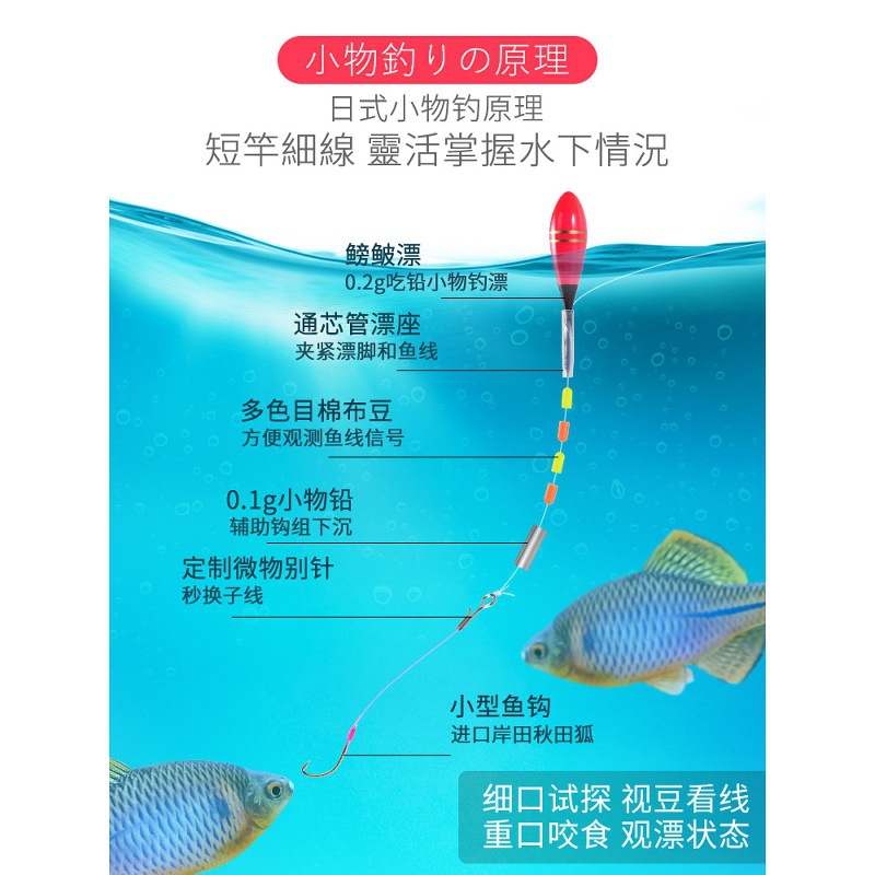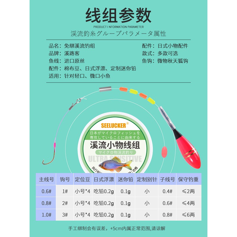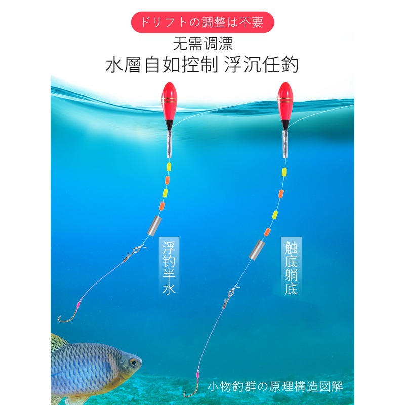 | 颜色 | 【盒装双钩】0.9米2组+配1漂+4单钩+2双钩 | 颜色 | 【盒装】1.4米2组+配1漂+4付钩 |