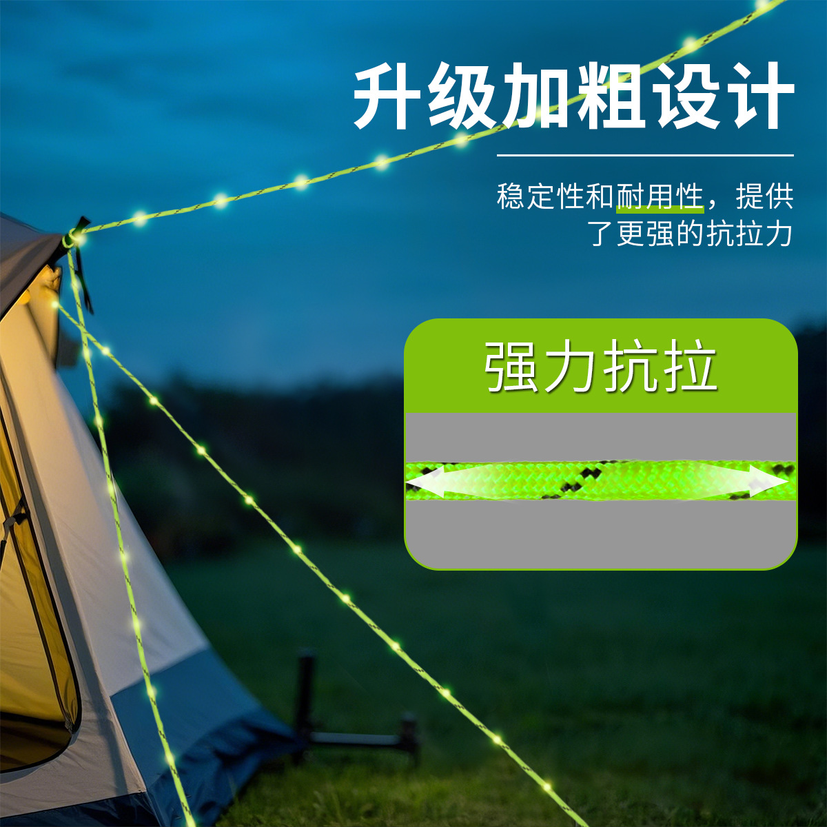 天幕发光风绳灯6mm露营灯10米帐篷防风警示灯3米露营警示灯风绳灯