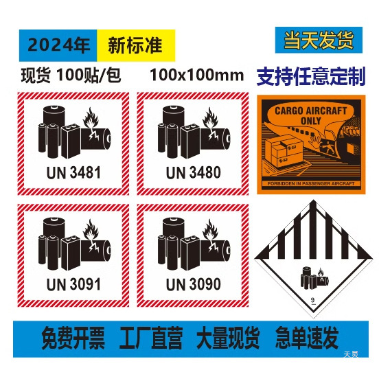 | 规格型号 | 100*100 UN3481 无英文 共100张 | 规格型号 | 100*100 UN3480 无英文 共100张 |