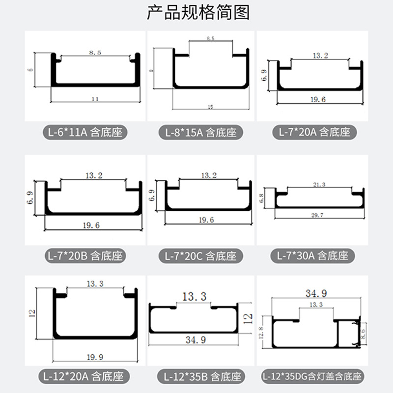 | 货号 | U型材带底座系列 | 材质 | 6063-T5航空级铝合金 |