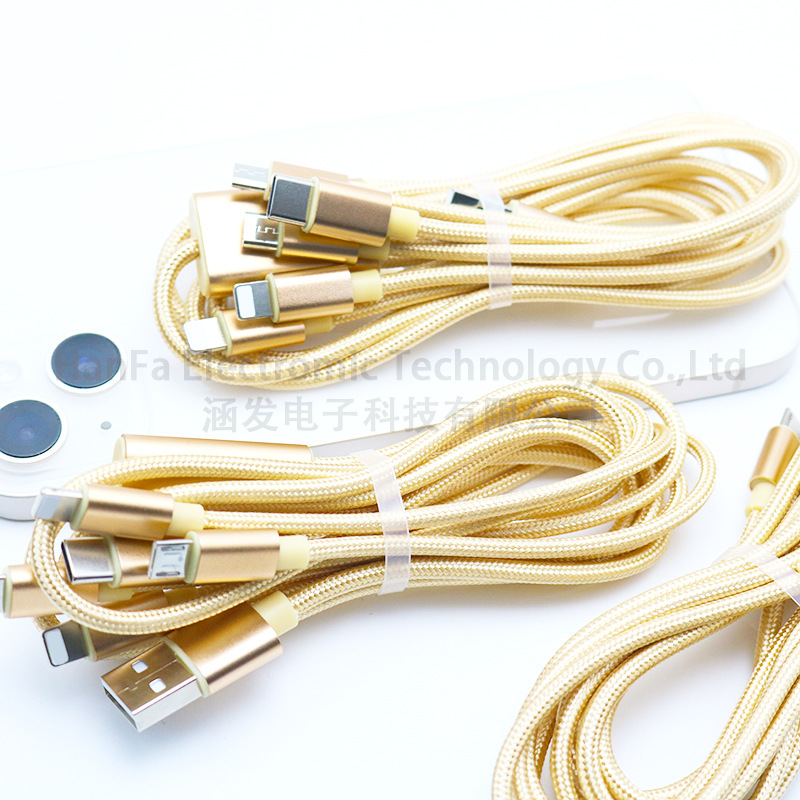 厂家直销外贸产品重金属一拖五铝合金编织手机充电线数据线