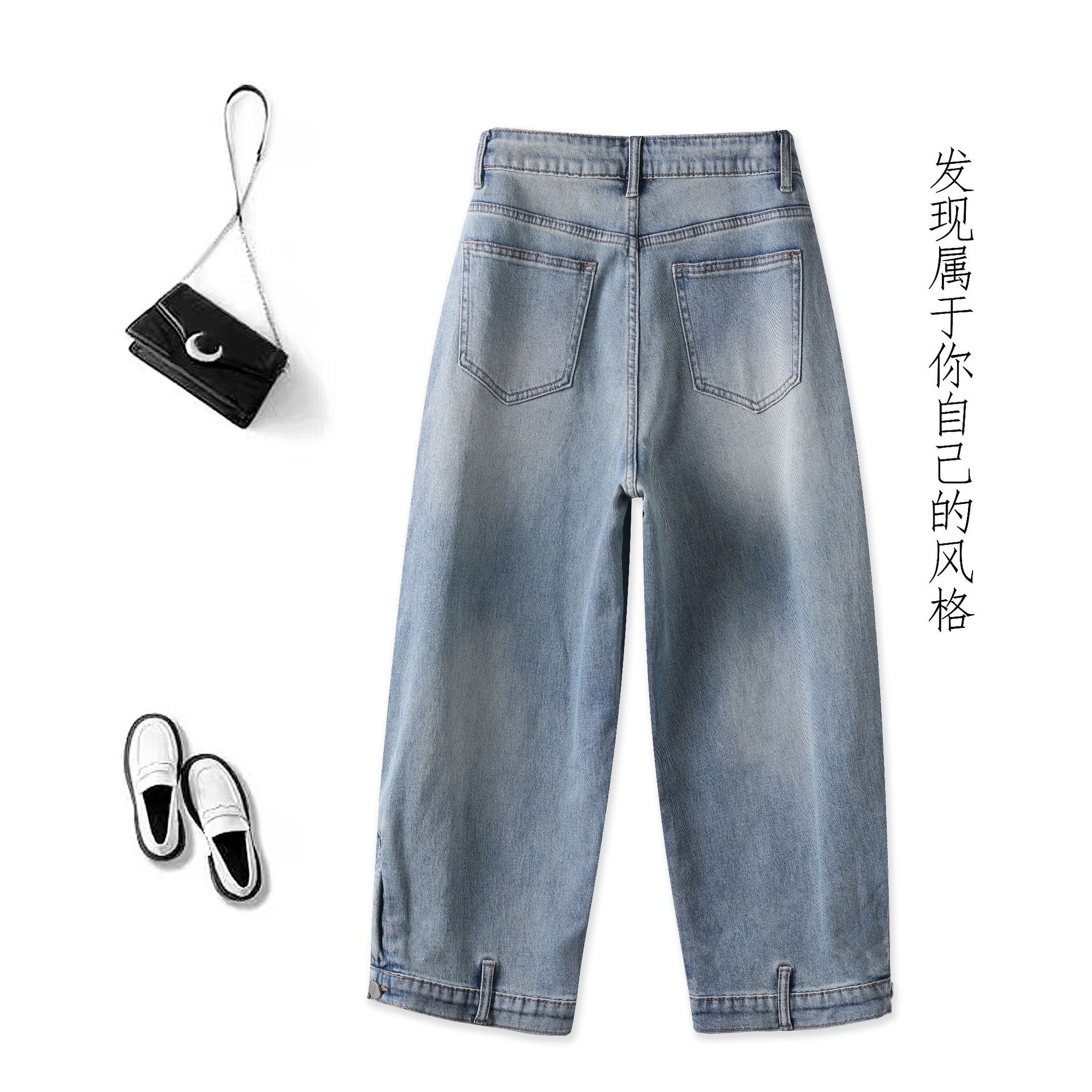 美式复古反穿牛仔裤女夏季高街设计感倒装水洗宽松直筒阔腿长裤子