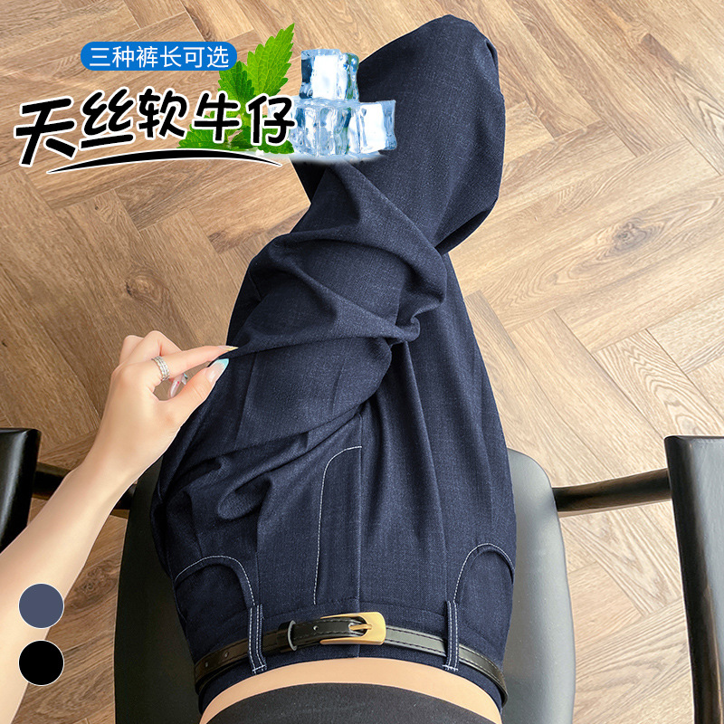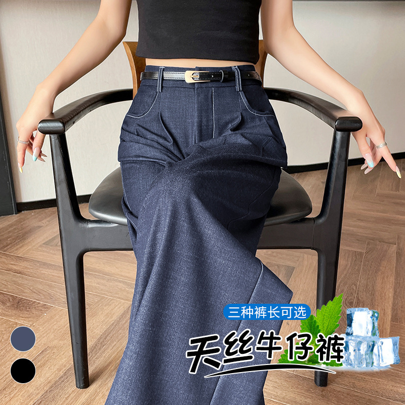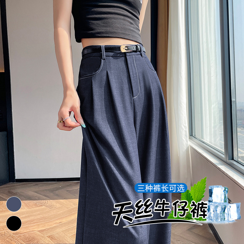 2025夏季新款薄款天丝牛仔裤软牛仔阔腿直筒休闲拖地裤女显腿长