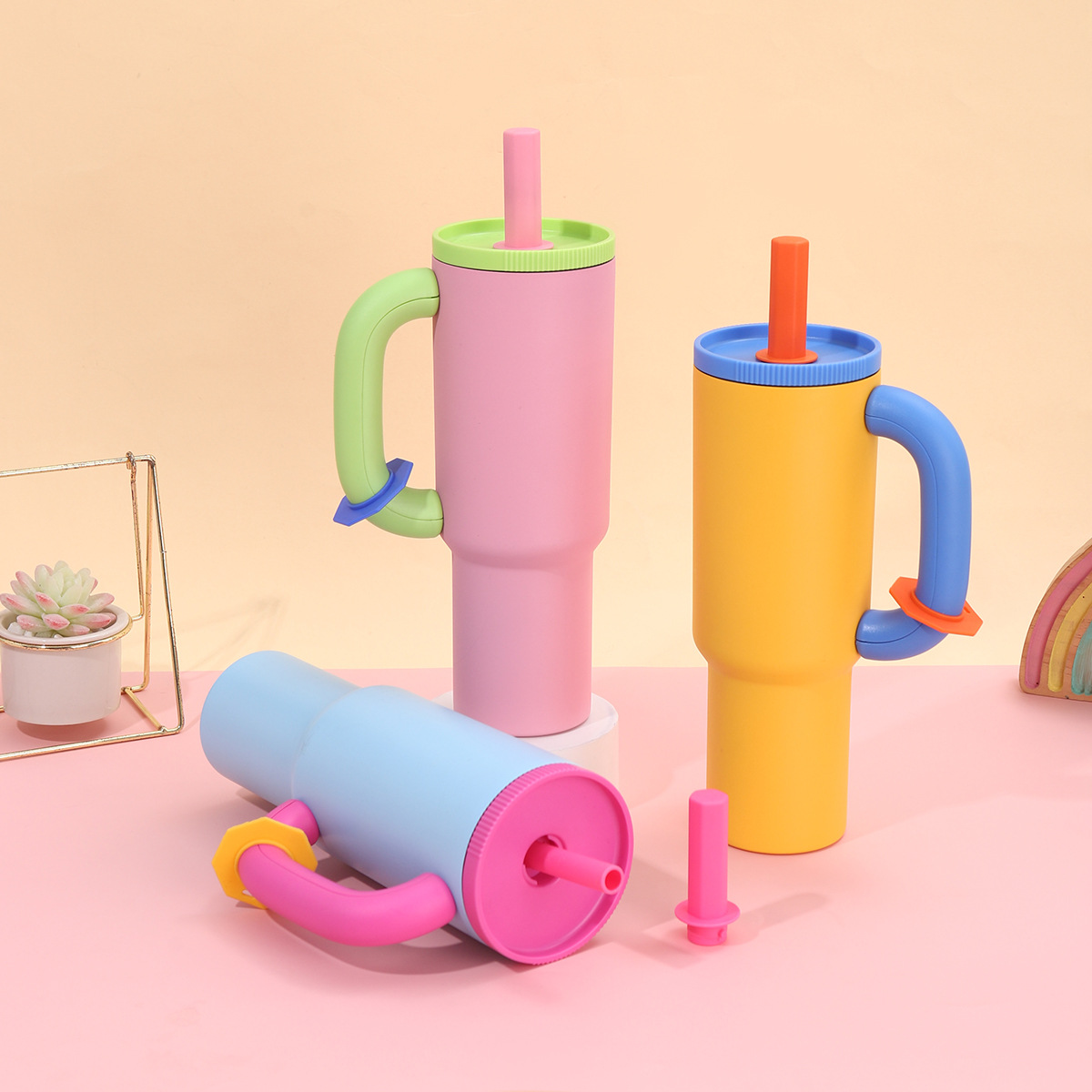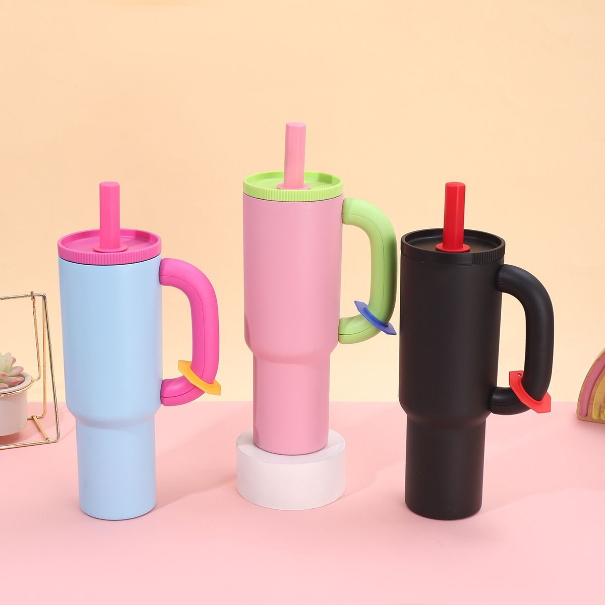 新款304不锈钢手柄汽车杯巨无霸多巴胺手柄吸管杯户外便携冰霸杯