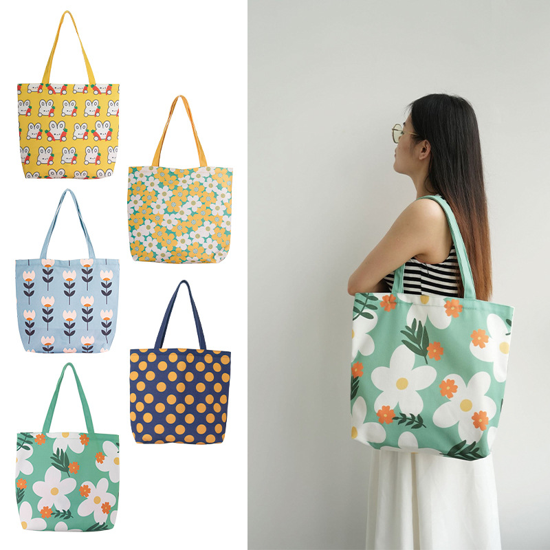跨境帆布手提袋折叠购物袋超大印花环保收纳包超市可折叠购物袋