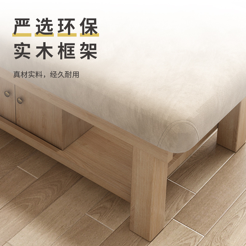 颜色 | 实木金米色绒布190*80 带胸洞 加粗腿8cm | | 颜色 | 实木金米色绒布190*80加柜 带胸洞 加粗腿8cm |