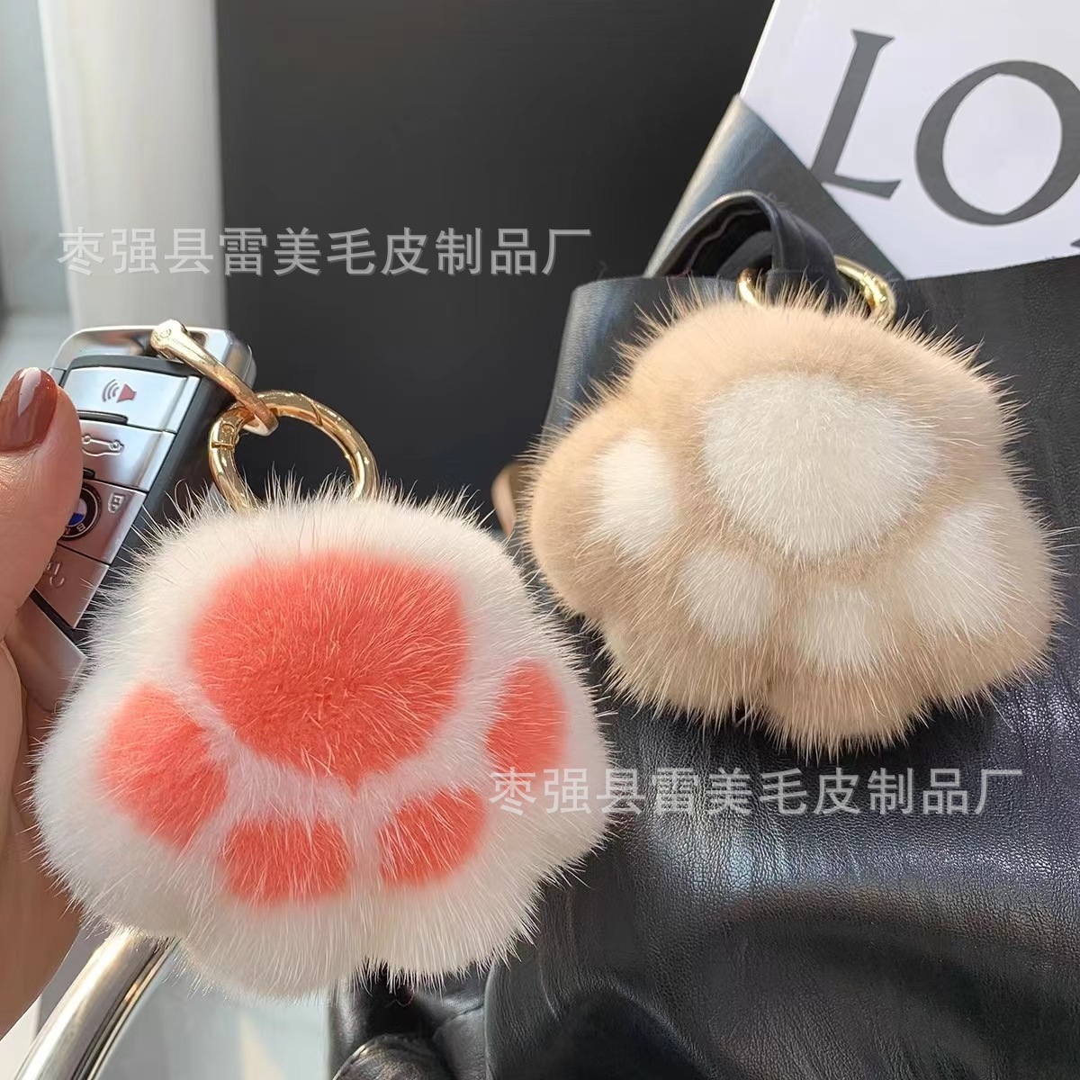 毛绒猫爪挂件卡通玩偶挂饰仿水貂毛猫抓挂饰汽车钥匙扣挂饰厂家