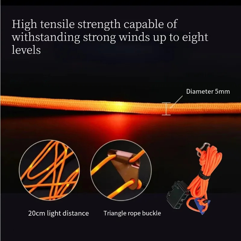 LED风绳发光灯露营绳天幕防风拉绳野营氛围警示灯户外发光风绳灯
