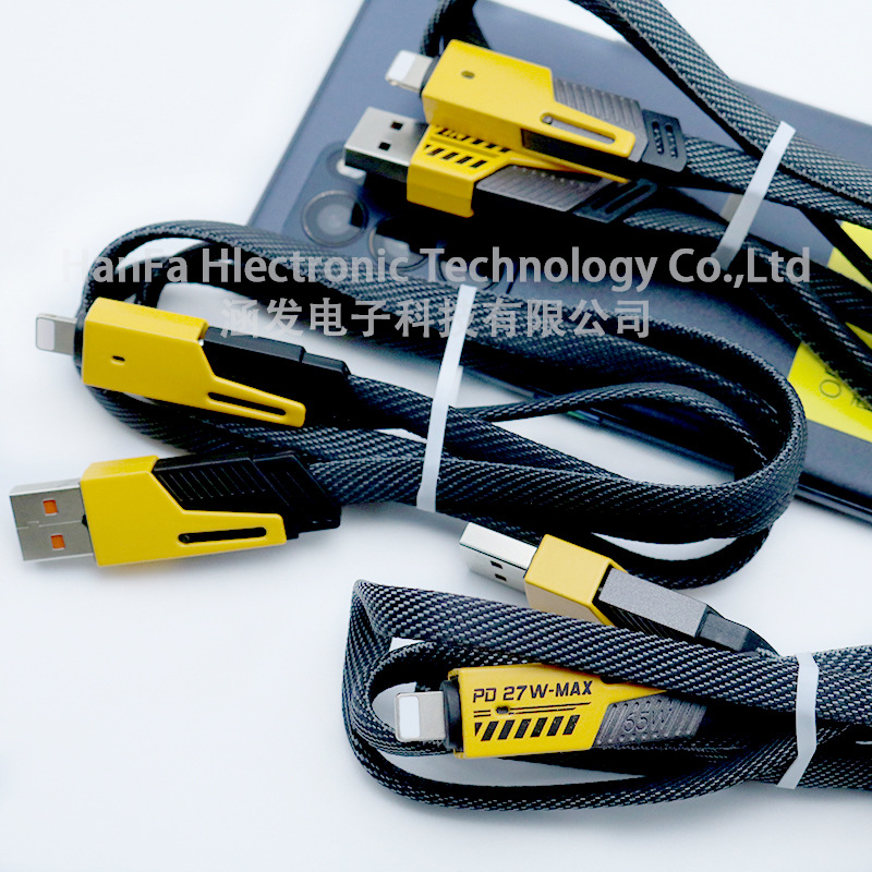 厂家直销外贸产品刀锋机甲线多功能四合一编织铝合金手机充电线数