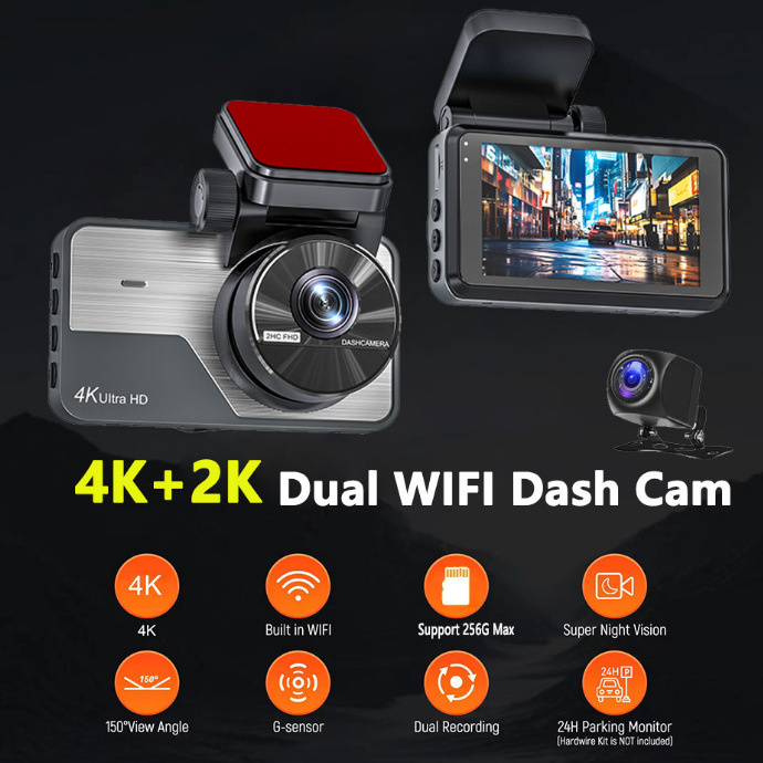 跨境前4K后2K超高清双录夜视行车记录仪3寸WIFI手机互联停车监控