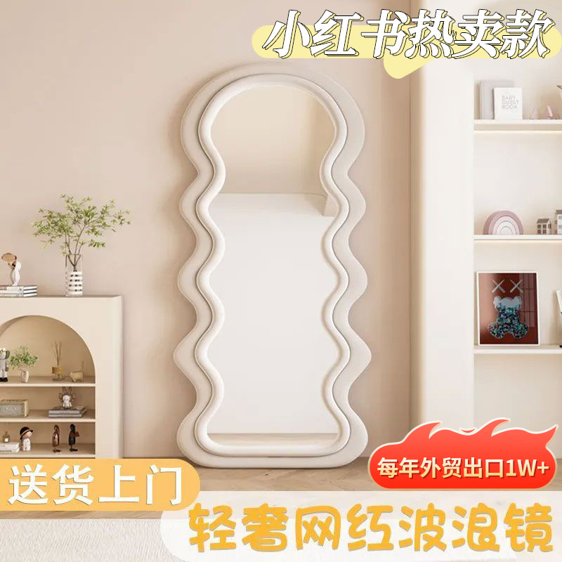 现代简约网红双层大波浪美式穿衣镜落地法式试衣镜子全身镜跨境