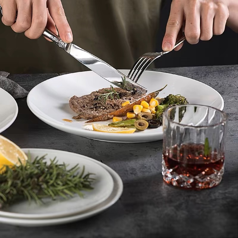 陶瓷浅式盘酒店西餐牛排盘小吃点心碟炒菜盘凉菜盘白瓷餐具