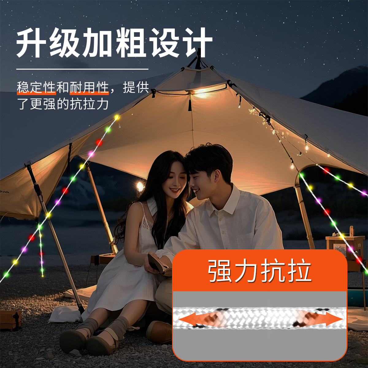 帐篷天幕防风绳拉绳LED发光风绳灯户外野营绳警示风绳露营夜光绳