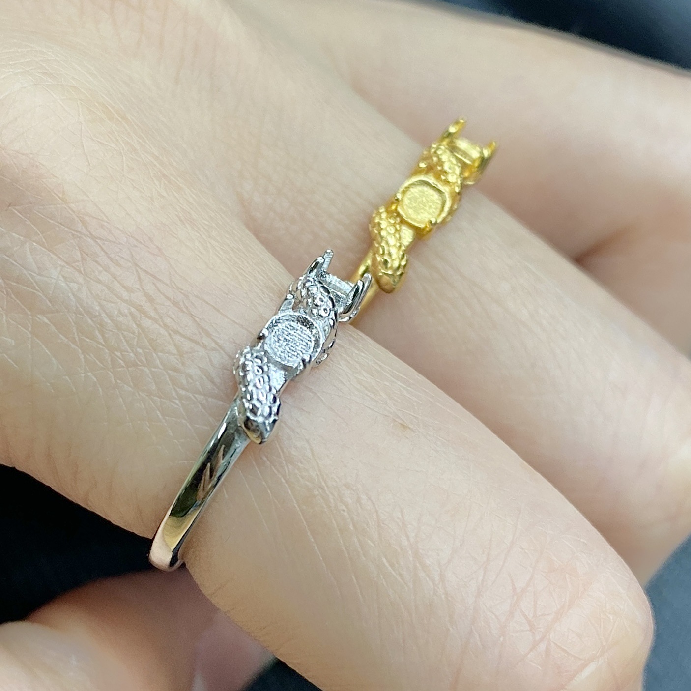 s925纯银女戒托蛇年好运高级感翡翠蛋面戒指气质小众空托蛋形银托