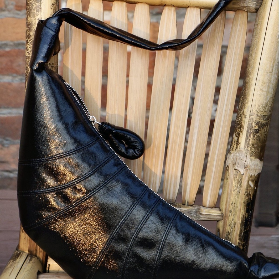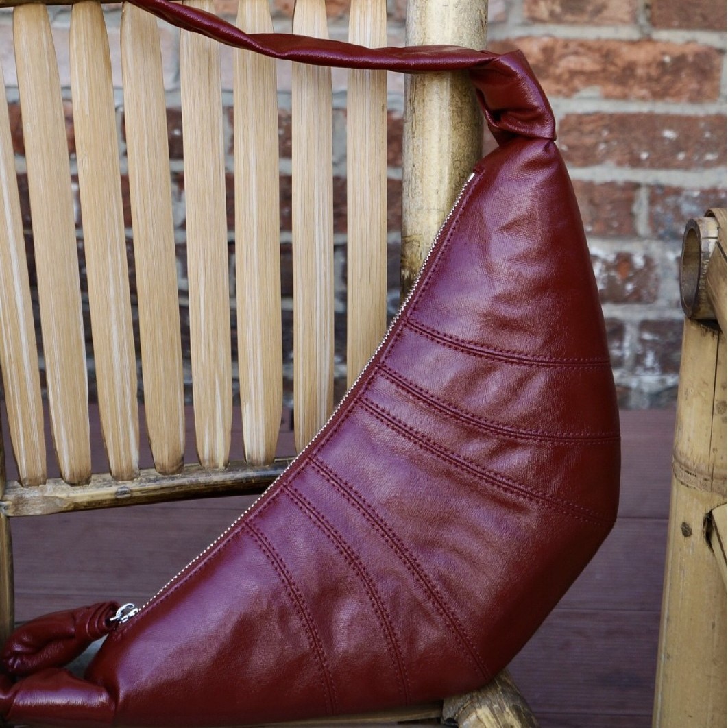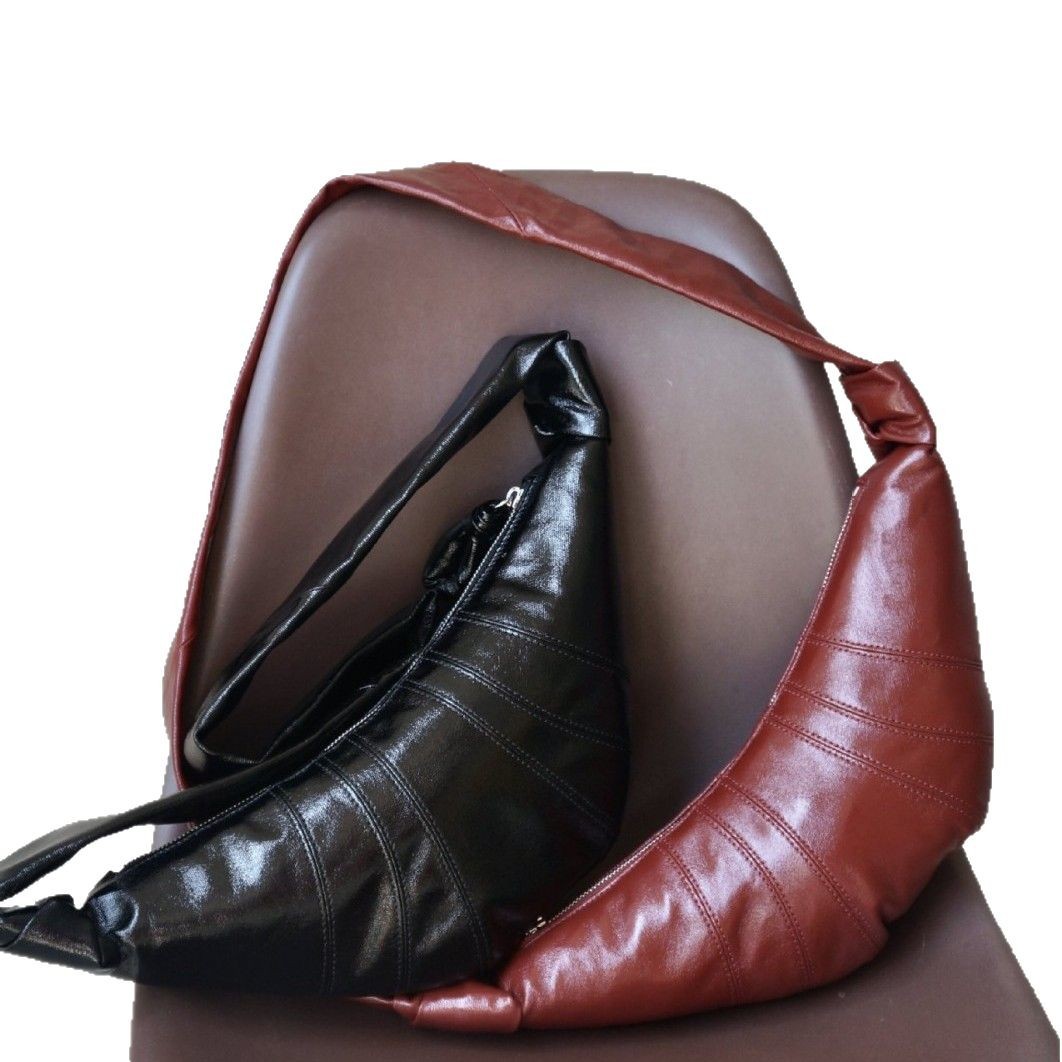 2025新款极简牛角包亚麻涂层料饺子包小众设计单肩斜挎包休闲可颂