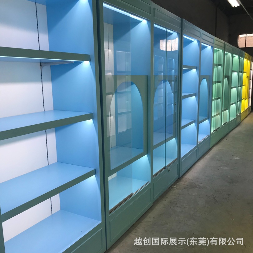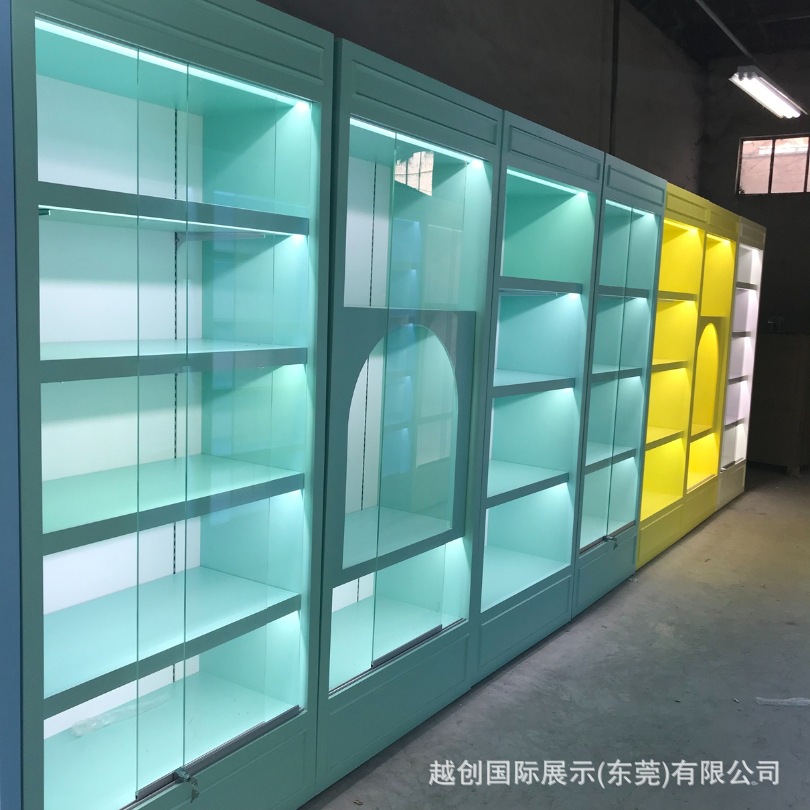 烤漆背柜【马卡龙色展柜】带门手办靠墙|多层展示柜定制LED展示柜