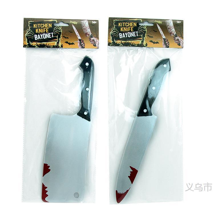 万圣节化妆舞会游戏表演用品整人恐怖塑料道具尖刀菜刀带血刀