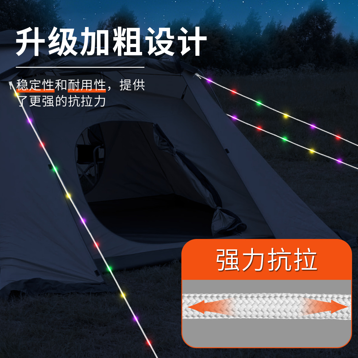 户外露营警示灯帐篷防风拉绳天幕固定绳氛围灯led野营发光风绳灯