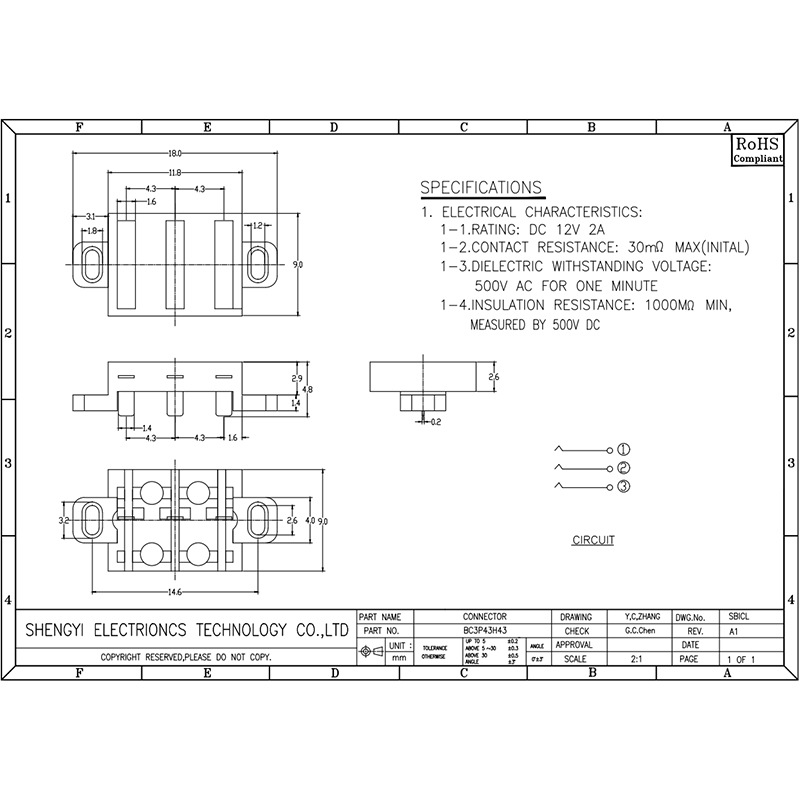 3PIN母座弹片连接器4.3PH间距高度4.3带螺丝孔游戏手柄电池座插座