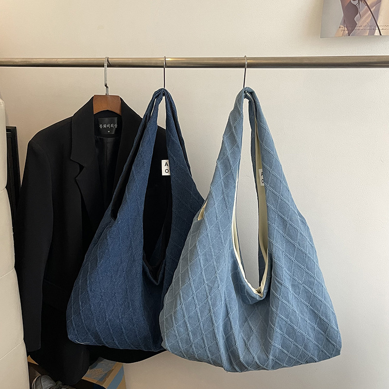 大容量牛仔包夏季新款时尚单肩腋下包女士上班通勤手提托特水桶包