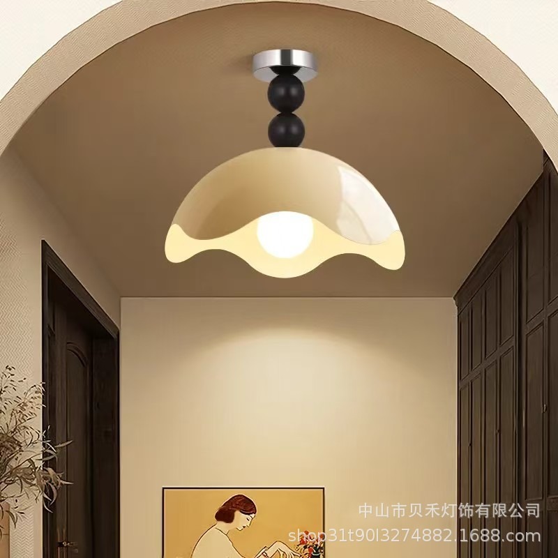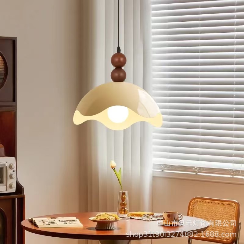 中古风蛋壳吊灯法式复古桃木餐厅灯设计师中山灯具日式饭厅餐吊灯