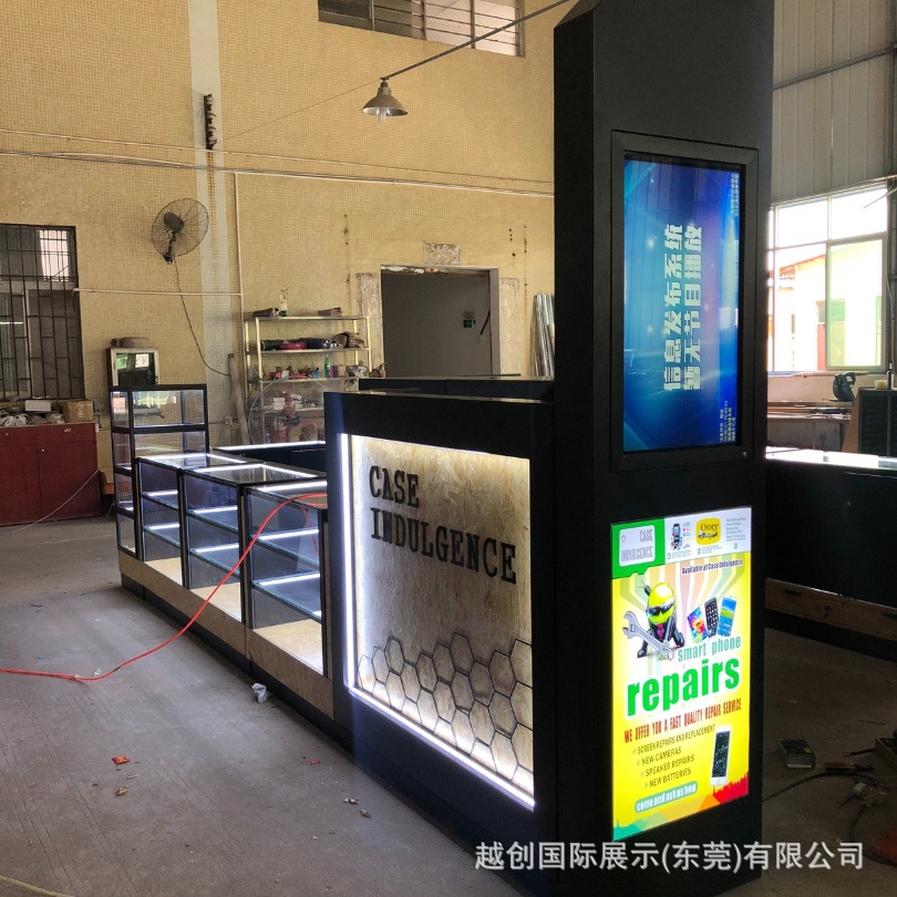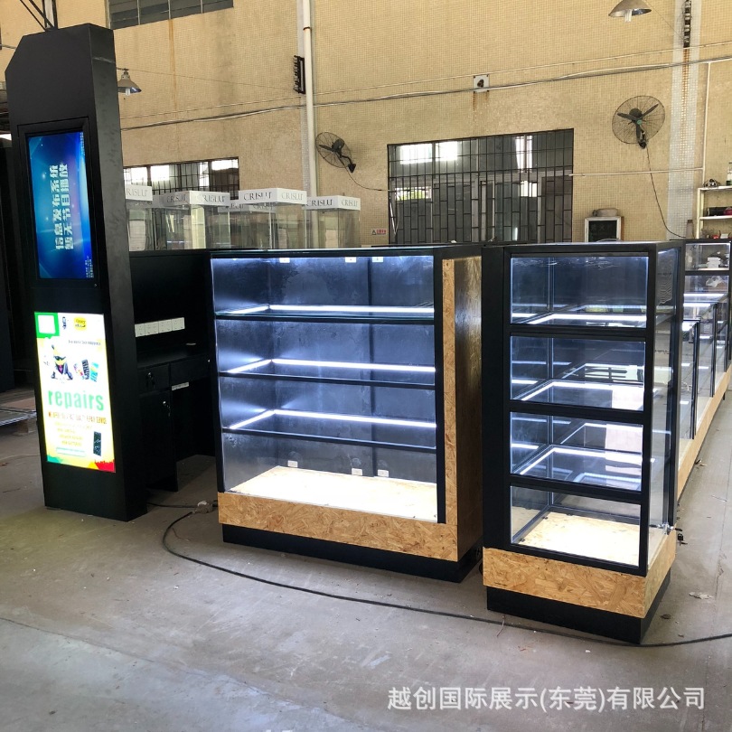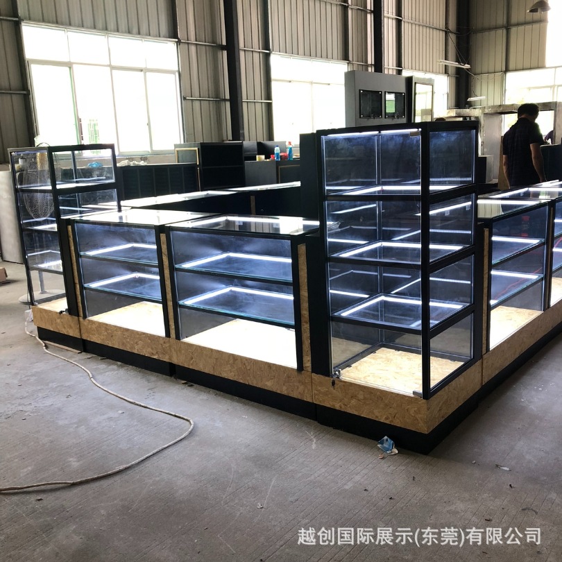 出口中岛柜【钢木结构展柜】源头工厂定制手表手机展柜|玻璃展柜