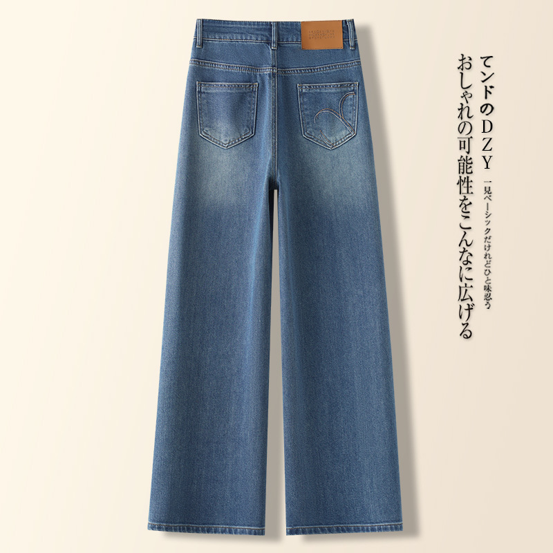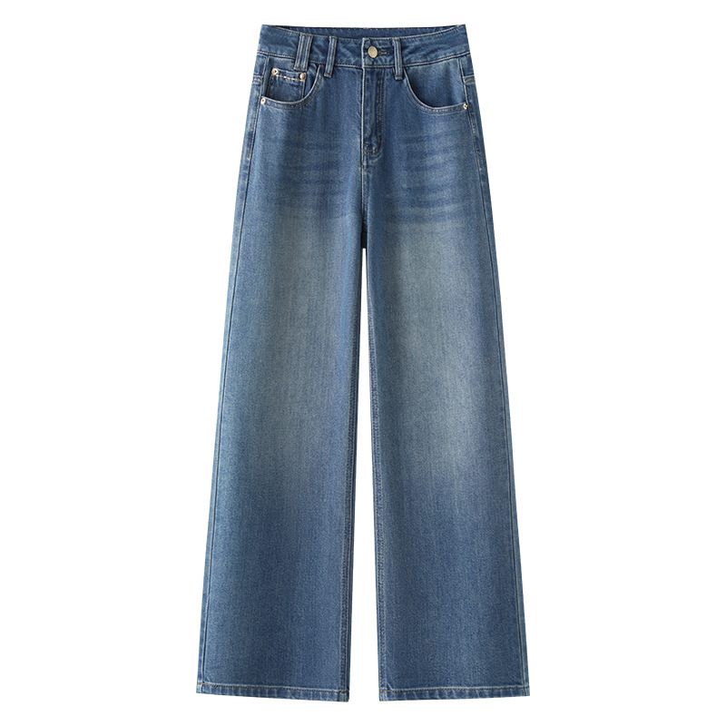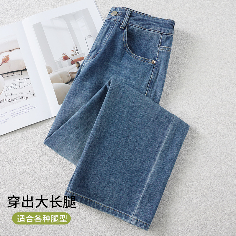 高端蓝色牛仔裤阔腿裤女春秋季2025新款高腰复古时尚直筒裤子批发