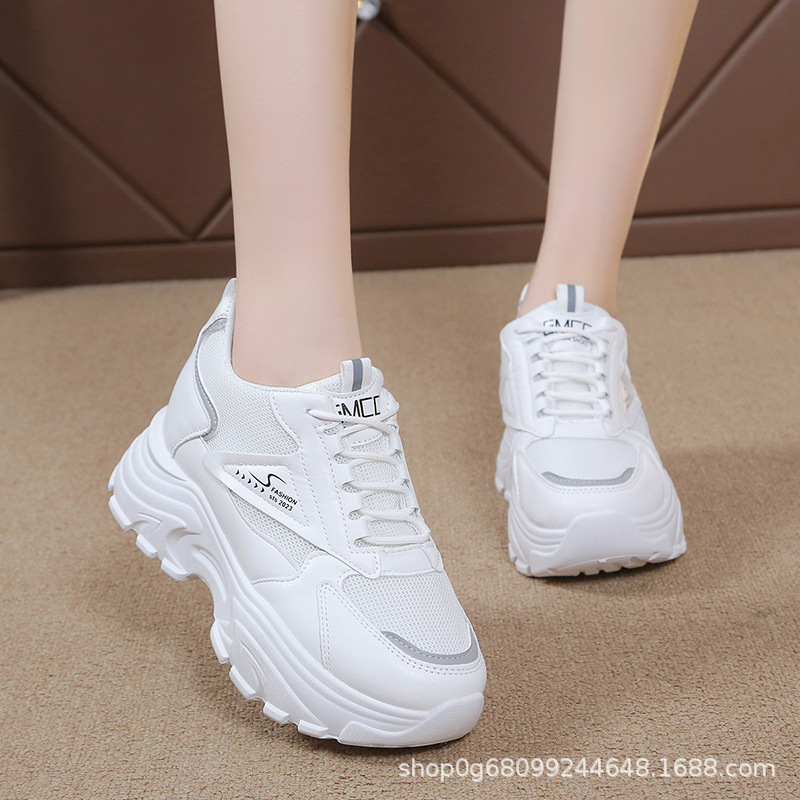 跨境老爹鞋女2025新款春秋季内增高松糕厚底小白鞋百搭休闲运动鞋
