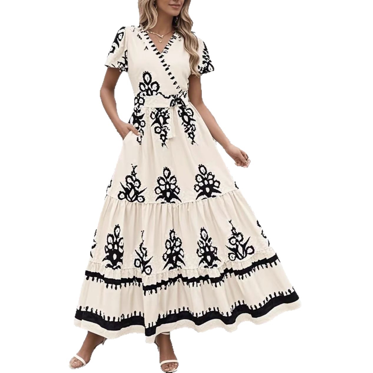 | 领型 | V字领 | 袖型 | 喇叭袖 |
