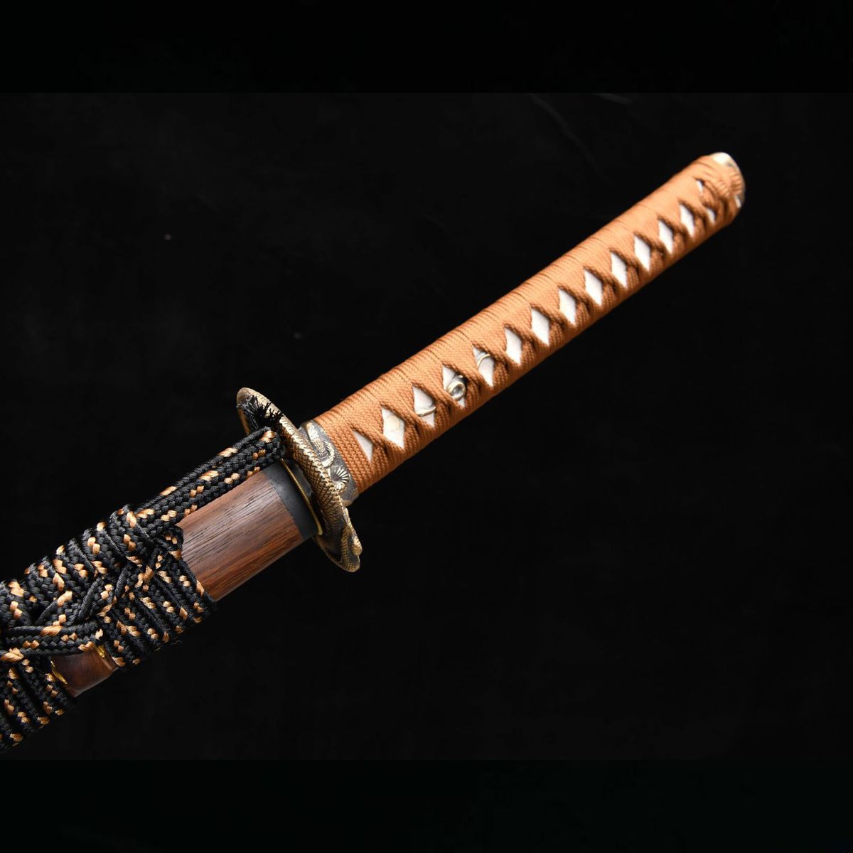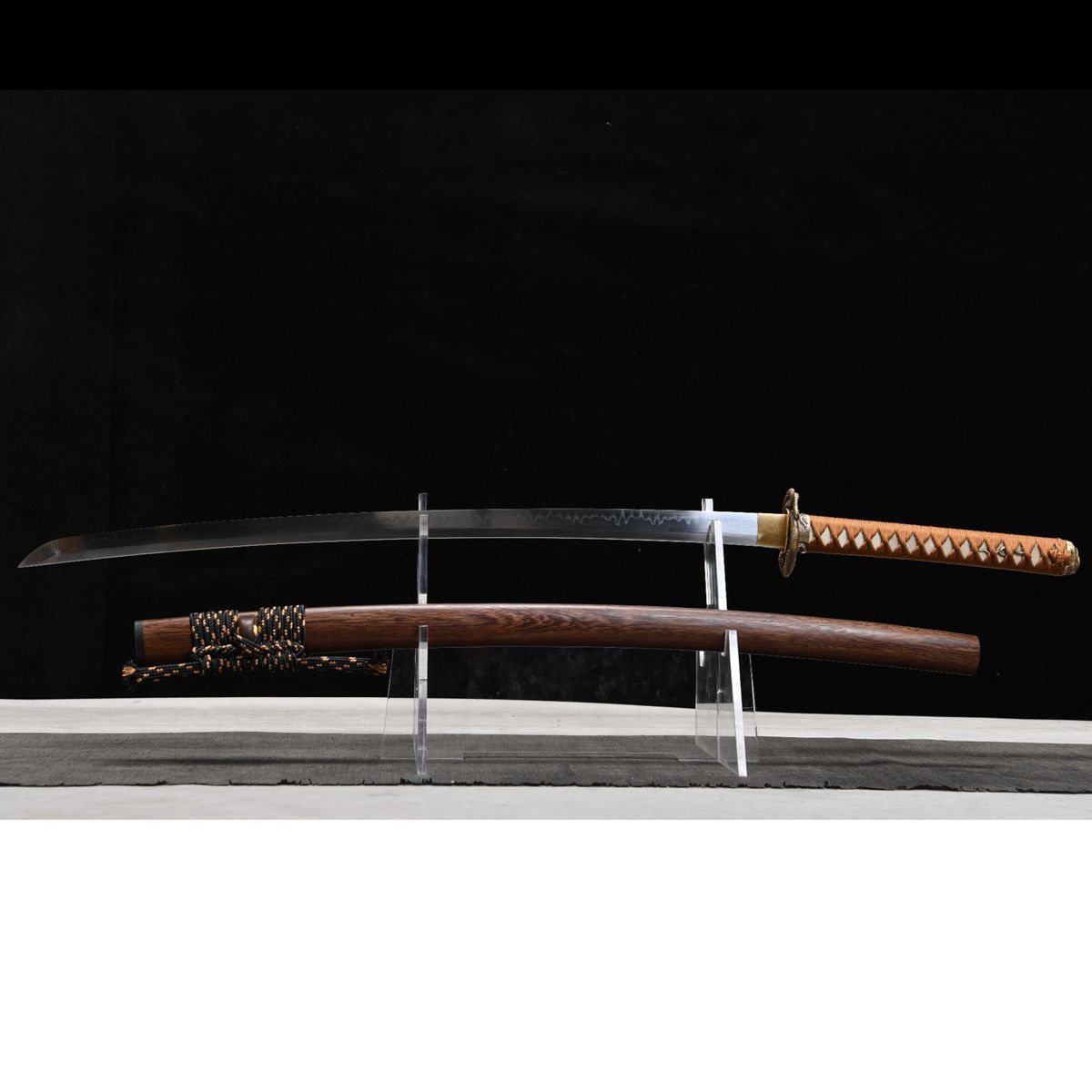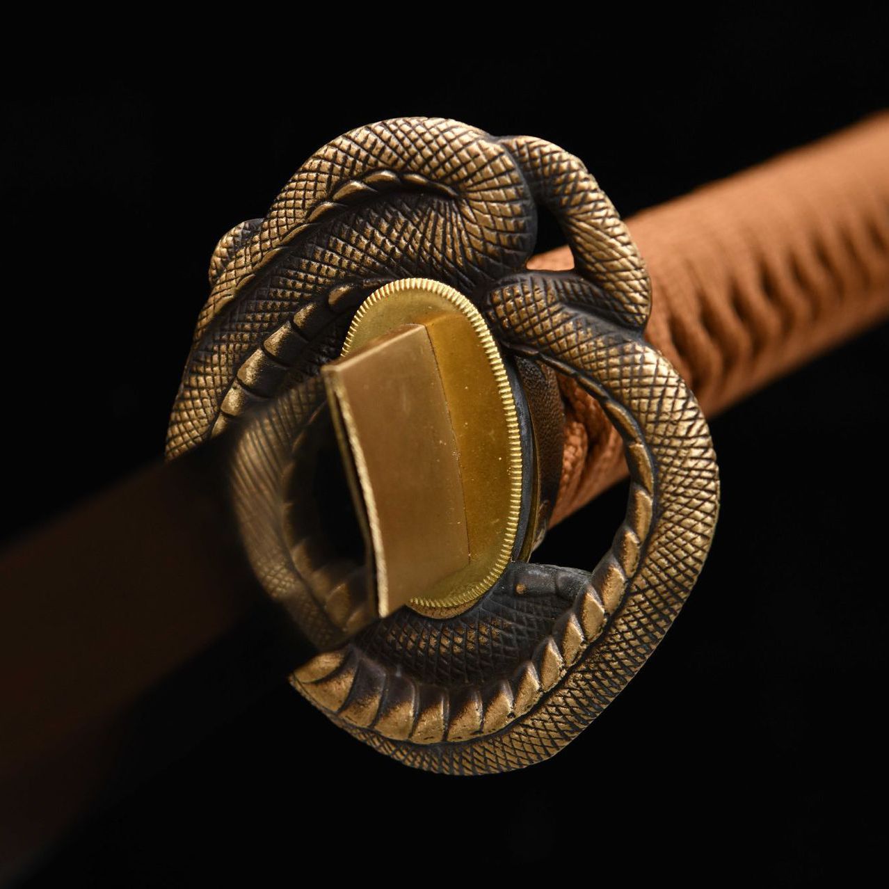 龙泉刀剑日式26寸纯铜装T10钢烧刃蟒蛇打刀黄铜装手工锻打未开刃