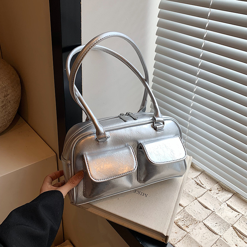 韩版时尚休闲通勤保龄球包多口袋腋下包通勤手提单肩包包
