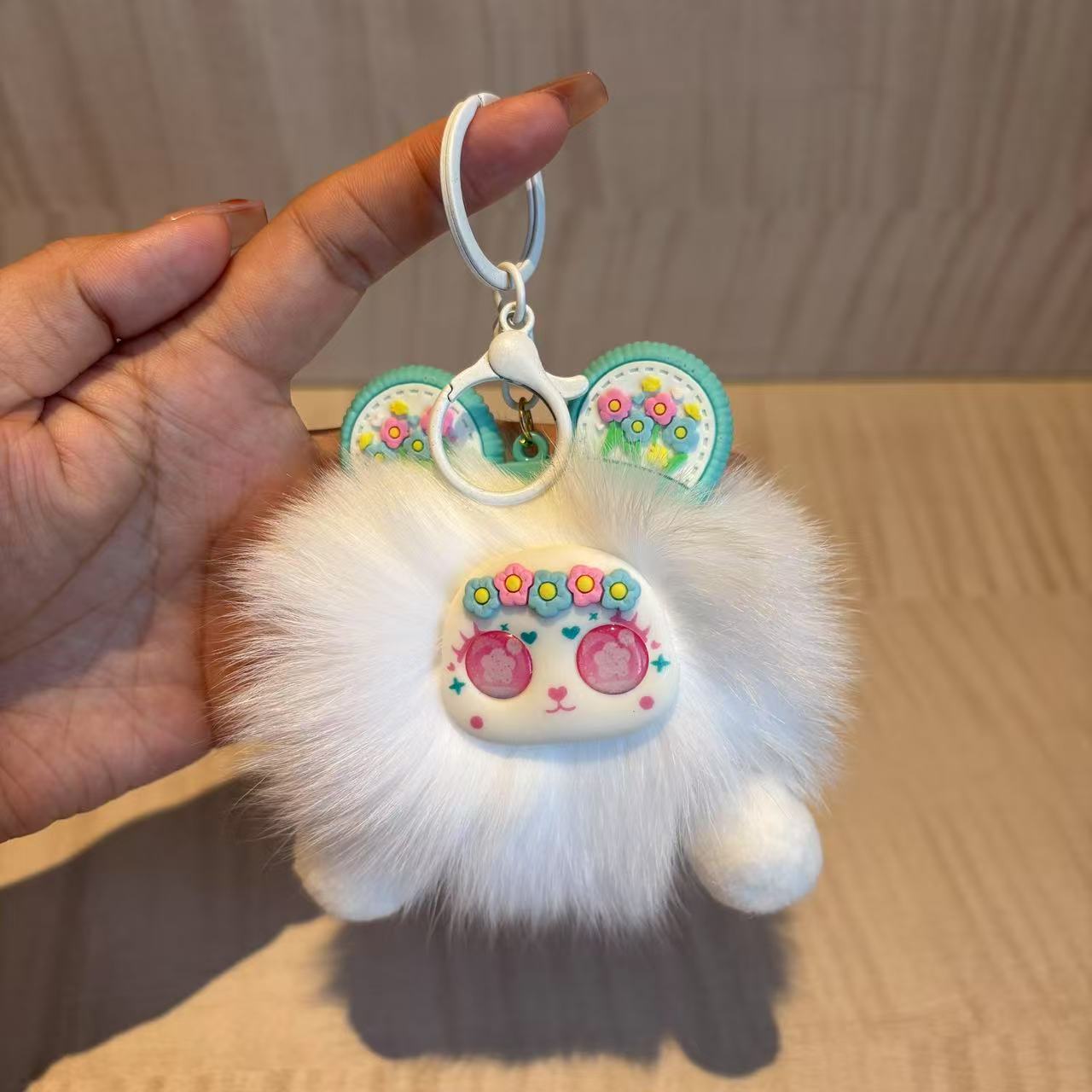 新品可爱兔子煤球玩偶挂饰娃娃机挂饰夜市摆摊批发背包挂件厂家