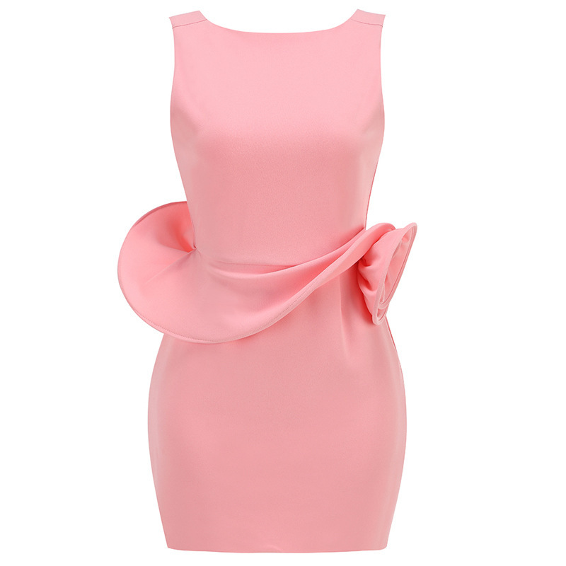 亚马逊跨境欧美时尚简约纯色蝴蝶结饰礼服新品性感背心连衣短裙子