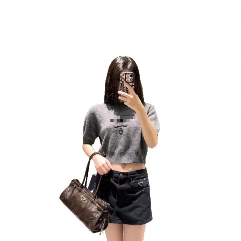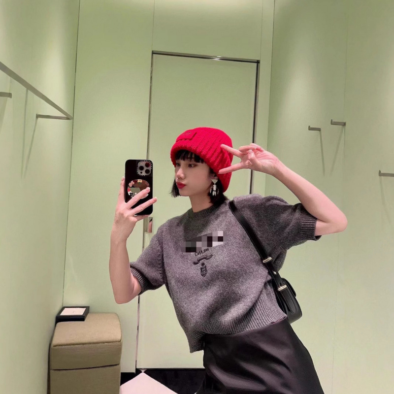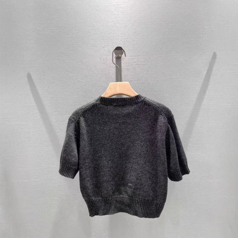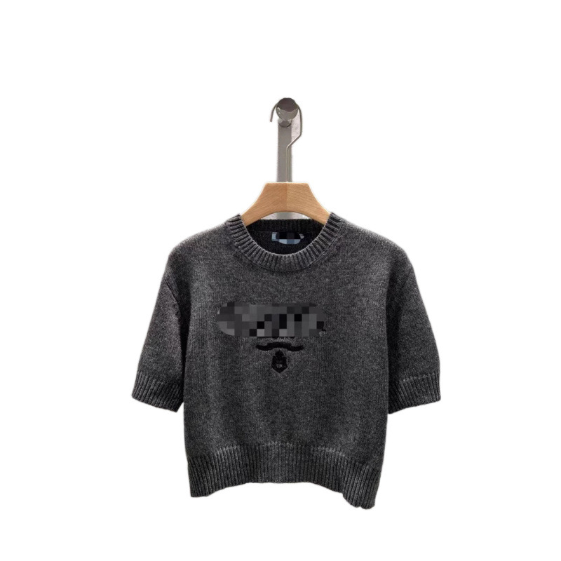 南油高定25春夏新品法式字母徽标圆领针织短袖套头修身显瘦上衣女
