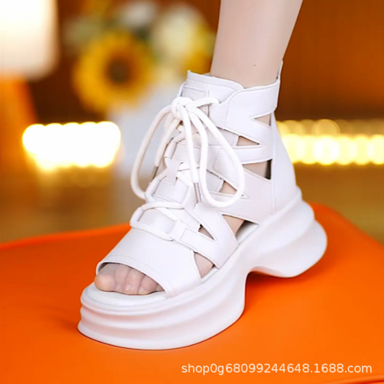 跨境外贸复古厚底系带凉鞋女2025年夏季新款时尚镂空单鞋休闲百搭
