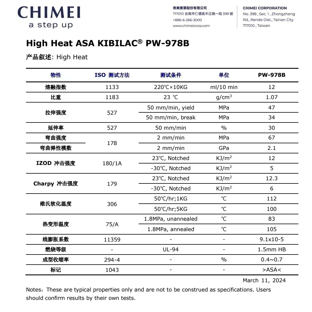 ASA塑料颗粒PW-957台湾奇美塑胶颗粒PW-978B塑胶原料颗粒PW-997S