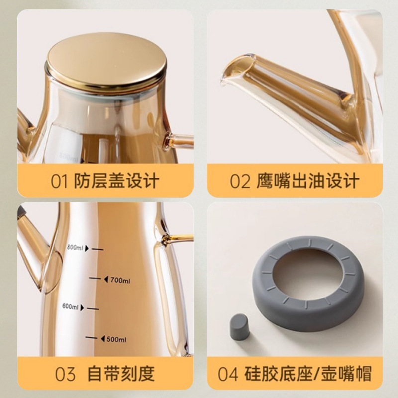 | 容量 | 【琥铂色】800ml高硼硅玻璃-耐热防爆油壶 | 容量 | 【灰透色】800ml高硼硅玻璃-耐热防爆油壶 |
