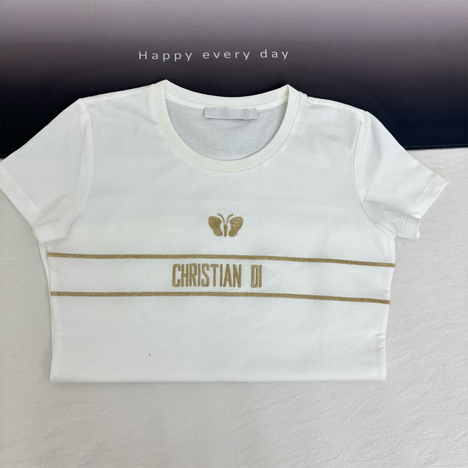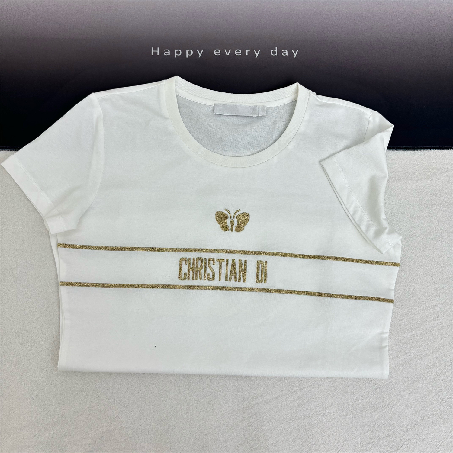 一件代发D家 高版本金丝蝴蝶刺绣高级优雅贵气圆领T恤 时尚百搭潮