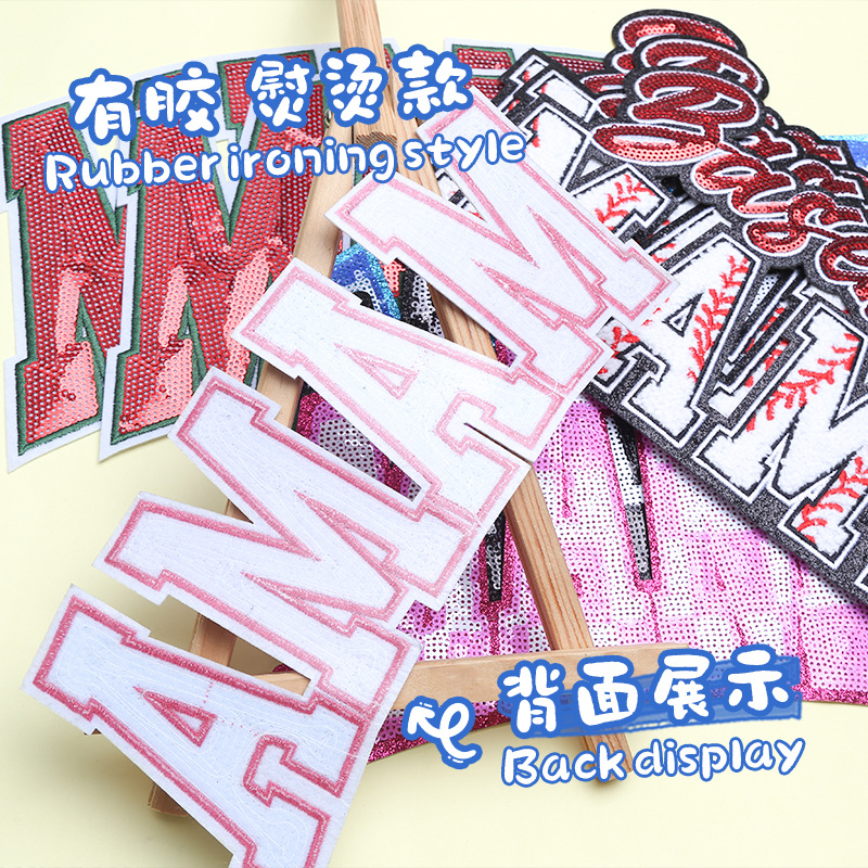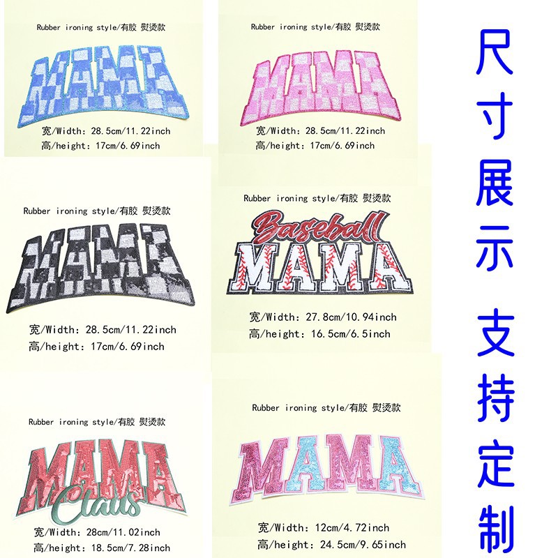 跨境热销MAMA大号亮片服装辅料补丁布贴 免缝DIY熨烫绣花章仔