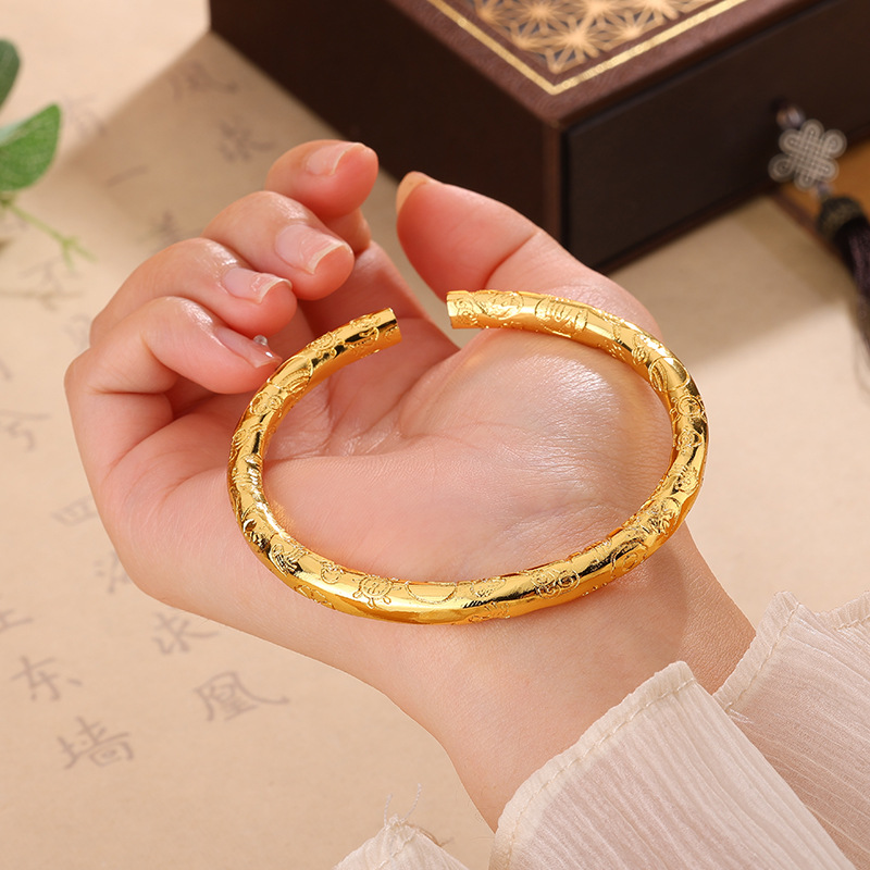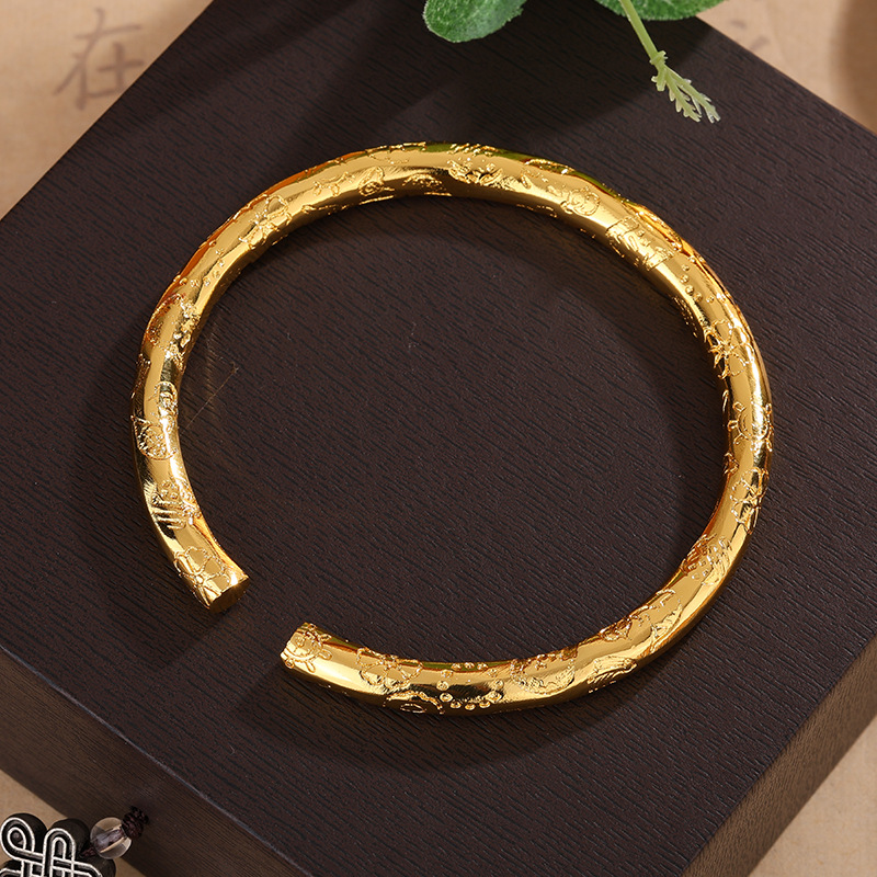 古法仿真999足金实心金手镯 不掉色铜镀金开口镯子厂家批发