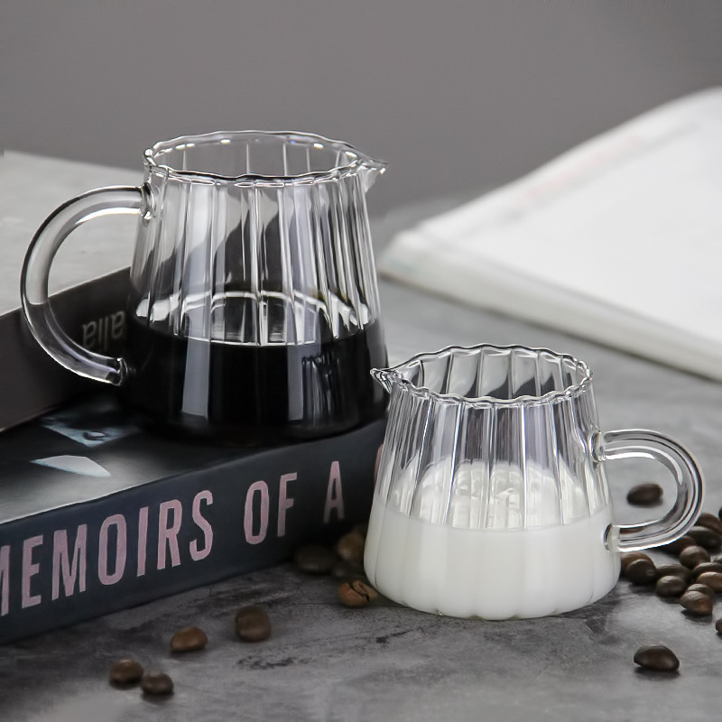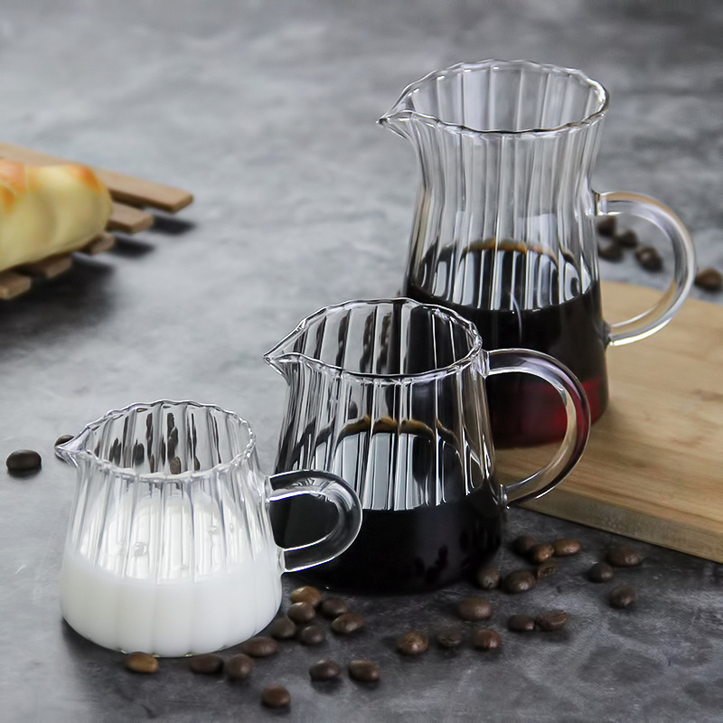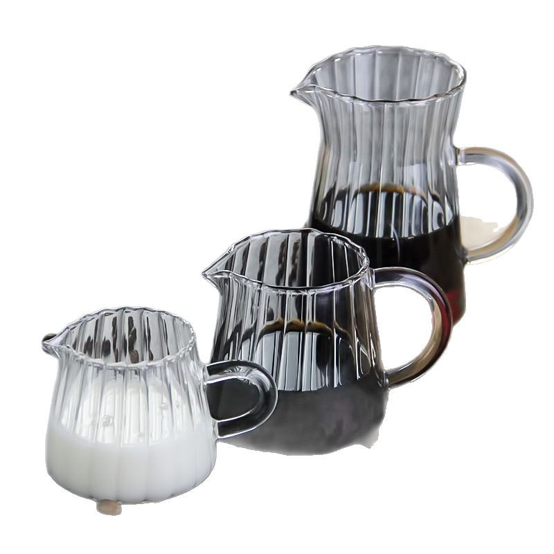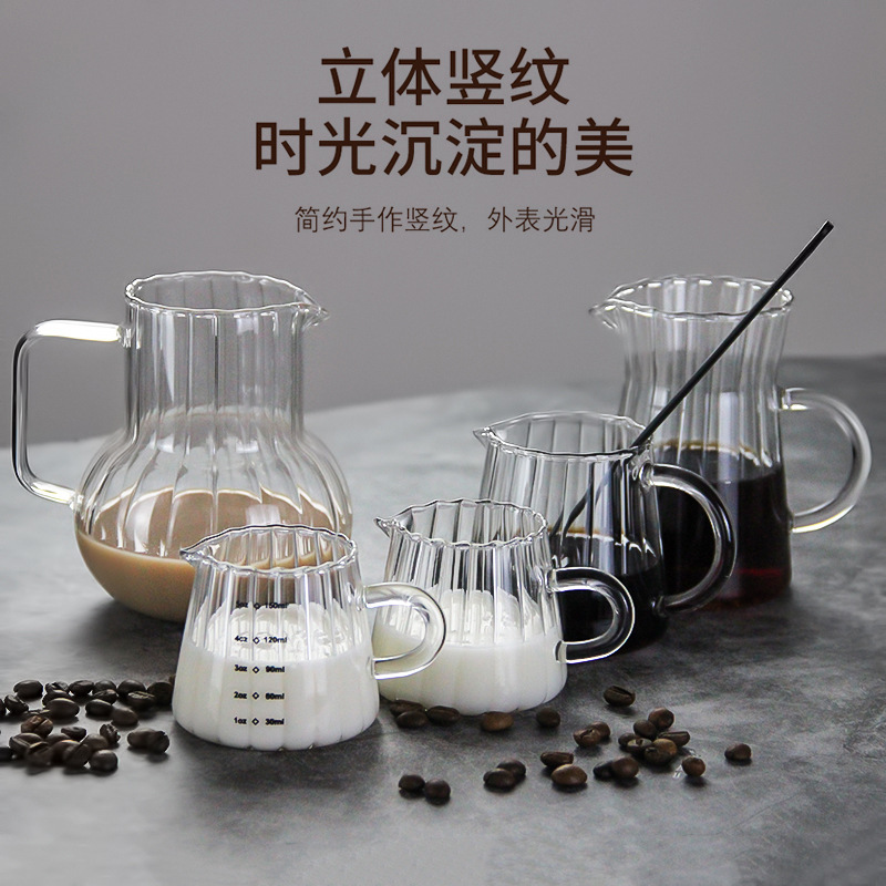 竖纹玻璃咖啡壶 家用手冲玻璃分享壶 玻璃牛奶杯玻璃瓶家居
