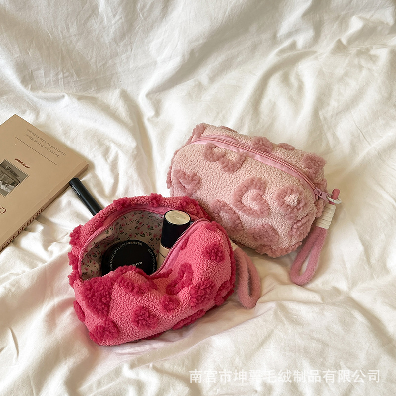 ins甜美少女毛绒大容量可爱化妆品收纳包便携旅行收纳袋旅行洗漱