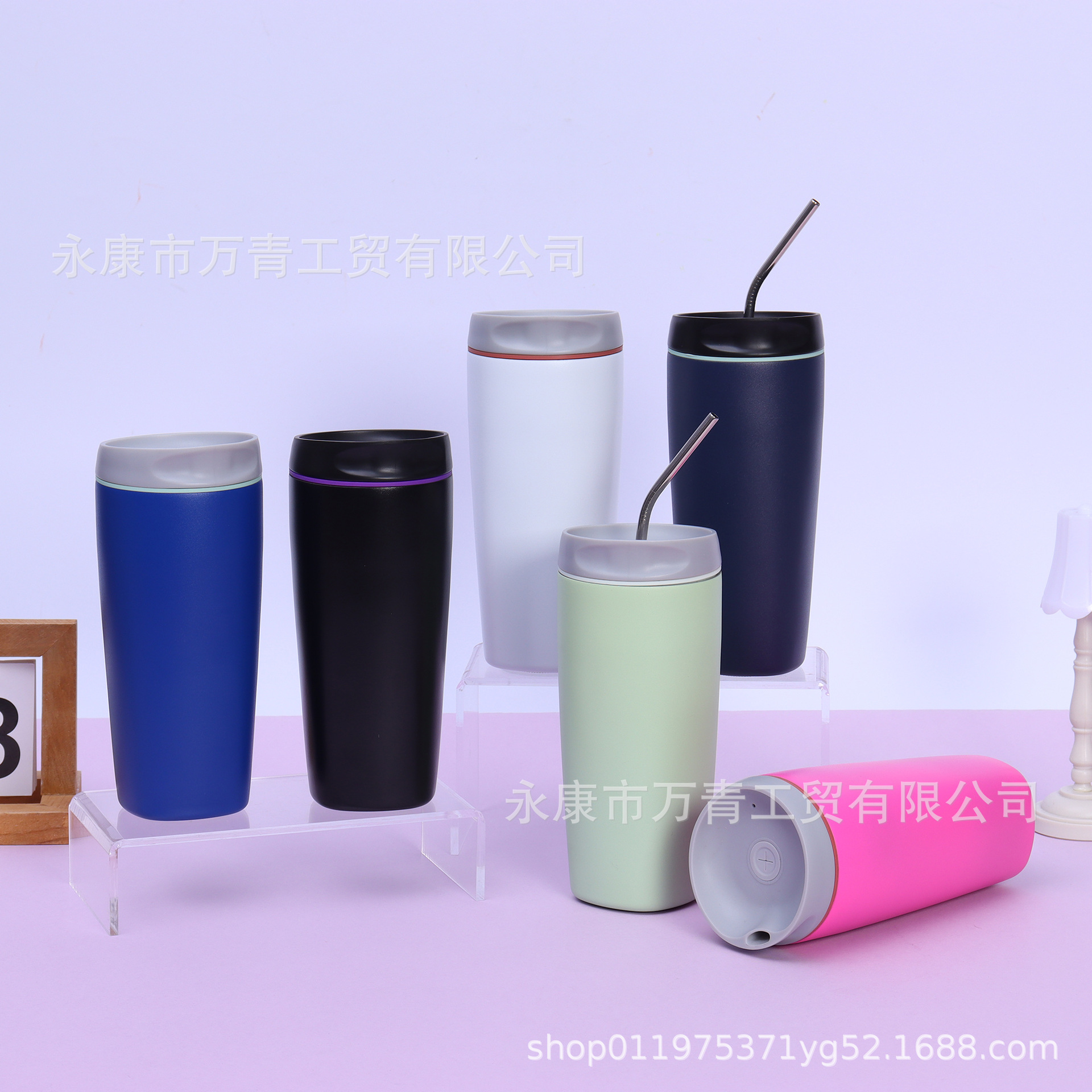跨境时尚304不锈钢保温杯学生便携户外随行杯20oz直饮杯带吸管
