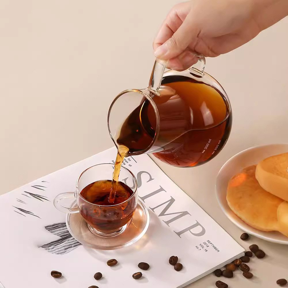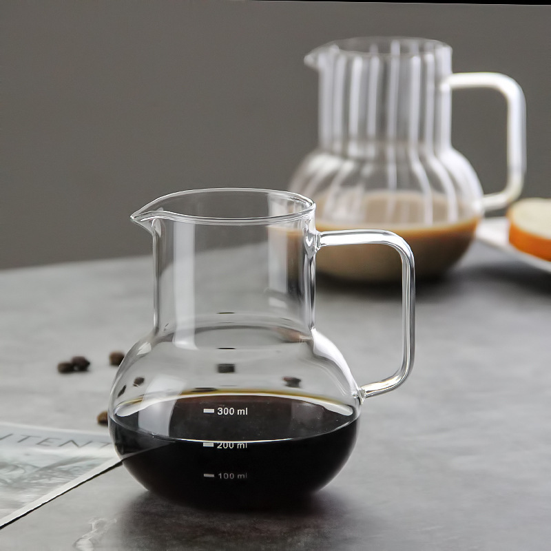 带刻度咖啡壶竖纹手冲壶咖啡分享壶过滤杯带把玻璃咖啡壶