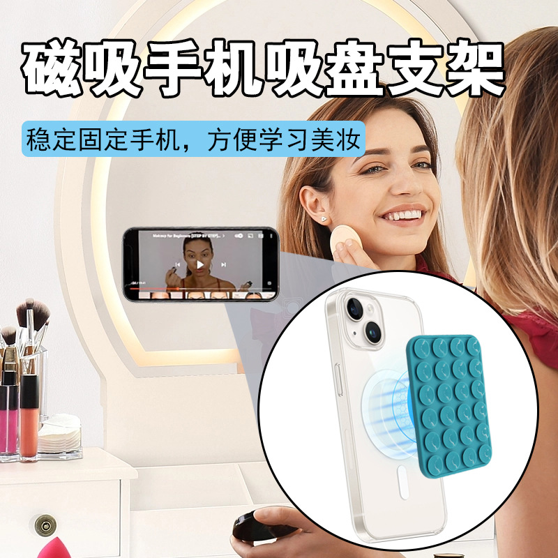 跨境热销防滑便携24粒硅胶手机吸盘可移动手机支架方形磁吸支架